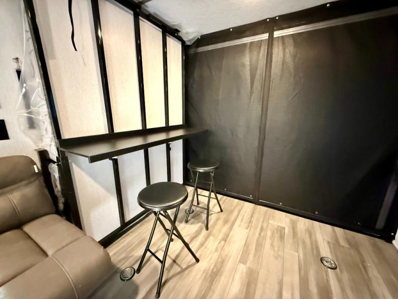 Medium-size Toyhauler with 13'2" Garage and Hybrid Expandable Tent Bed! 190W Solar! Exterior: White/Black