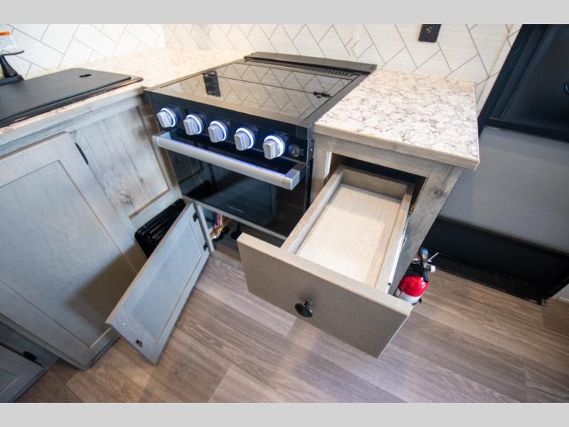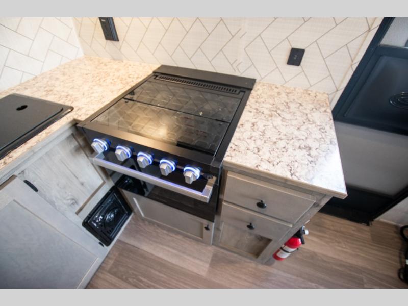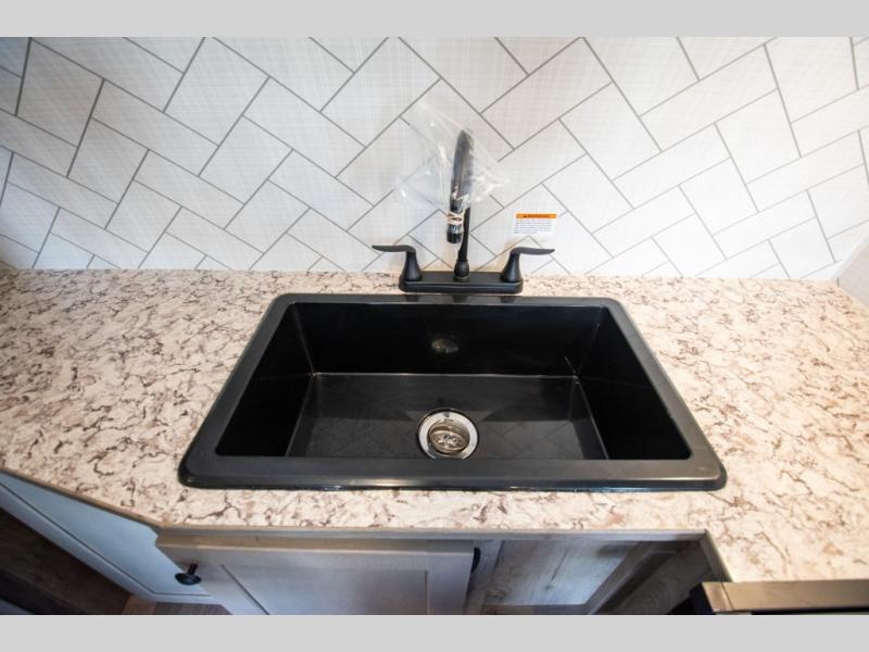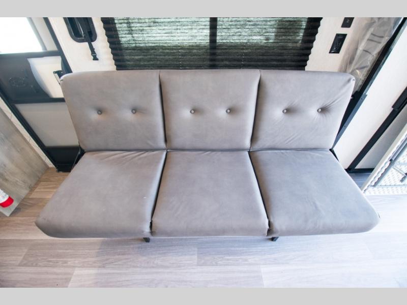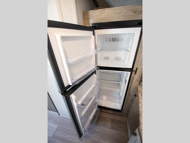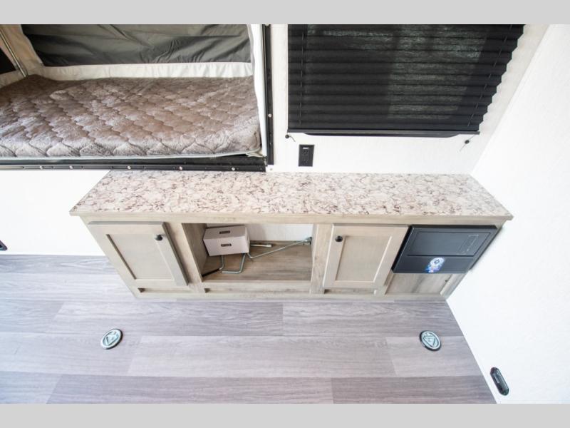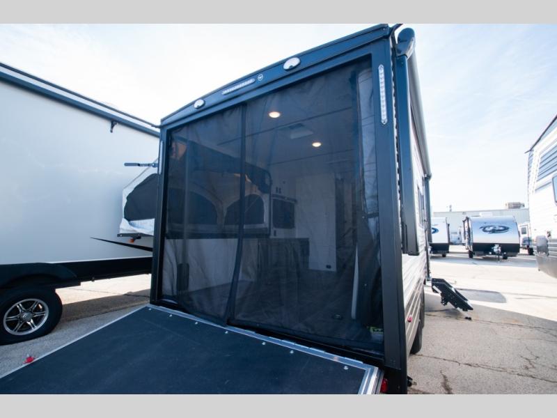 Get ready for a great camping experience where you can take along your favorite ride-on toys, kayaks, or other items that you may not normally have room to load as this toy hauler features 13' 2" of cargo space that can easily be loaded using the rear ramp door. Once unloaded, set up with the fold-down bed that will make for a great night's rest. There is also a jiffy sofa that can transform into added sleeping space at night. The kitchen amenities will make it easy to create a warm meal, and you can get cleaned up and refreshed in the bathroom with tub/shower and toilet. And when the optional tent bed is added on this model, you can sleep more campers!