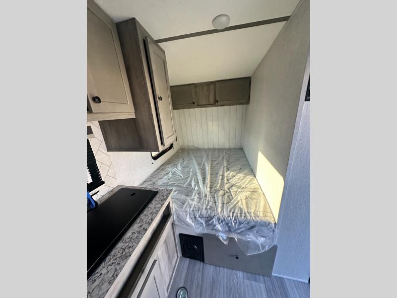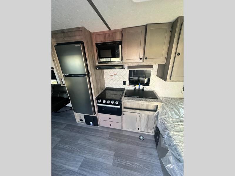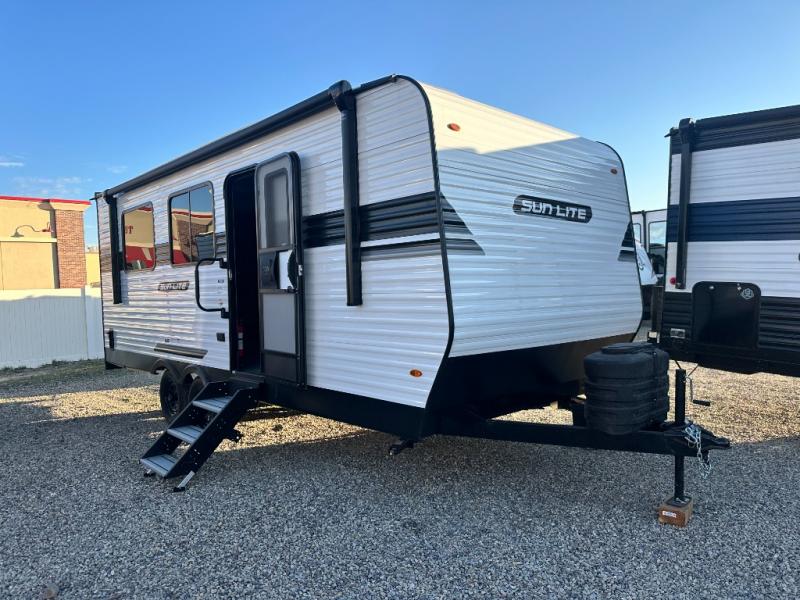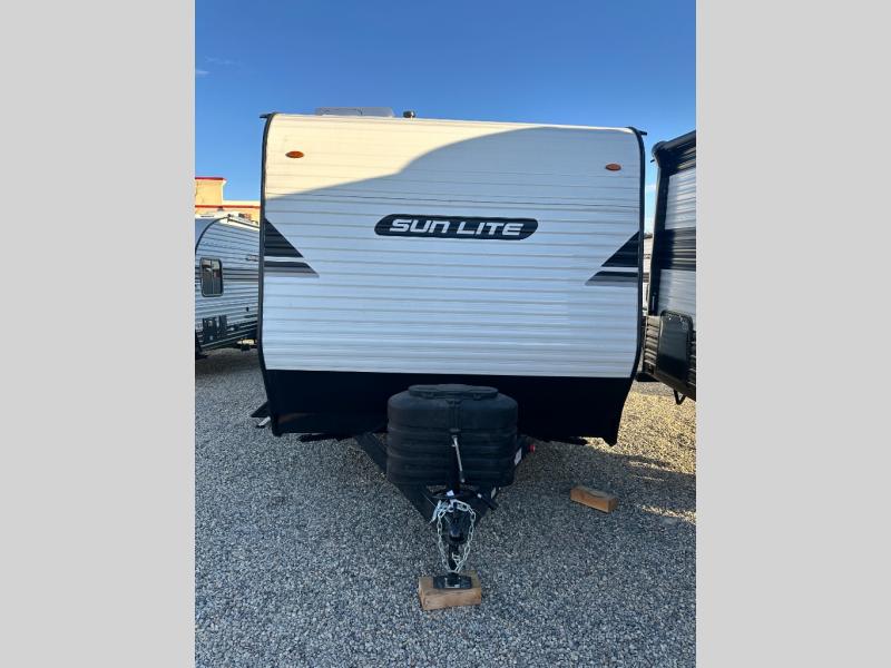 You can trust the build and enjoy your experience with any one of these Sunset Park RV Sun Lite travel trailers! Their aerodynamic profile is not only easy to haul, but also saves on fuel. They are built to withstand years of traveling even though they are lightweight with a diamond plate rock guard, a one piece PVC roof membrane, Dexter Spring-Leaf axles, and tinted safety glass windows. Some comfort standards you are sure to enjoy are the two-burner stove top range with hood, light and fan, plus the refrigerator and microwave, and an outside shower to help keep the dirt outdoors where it belongs.