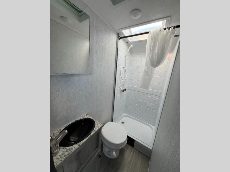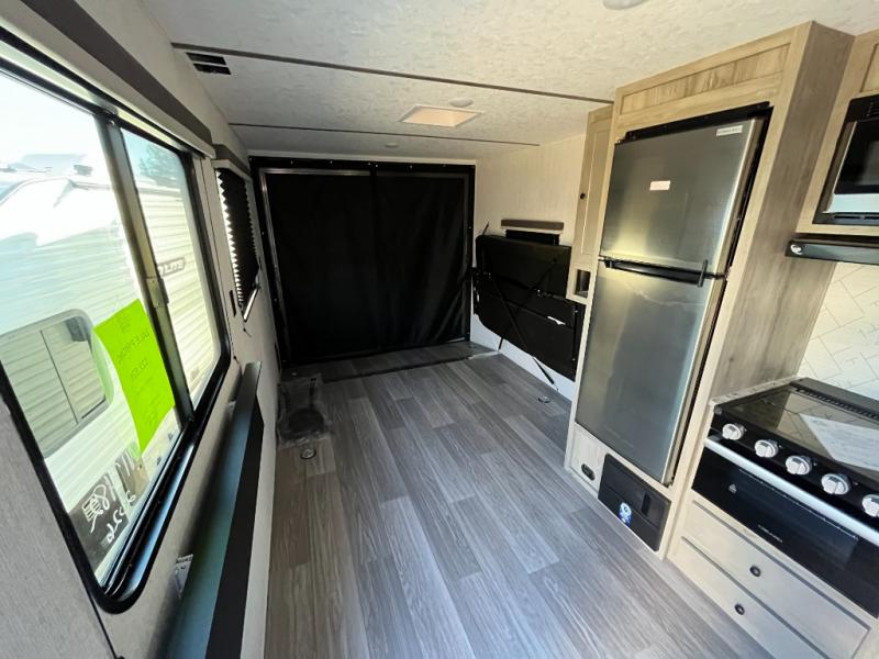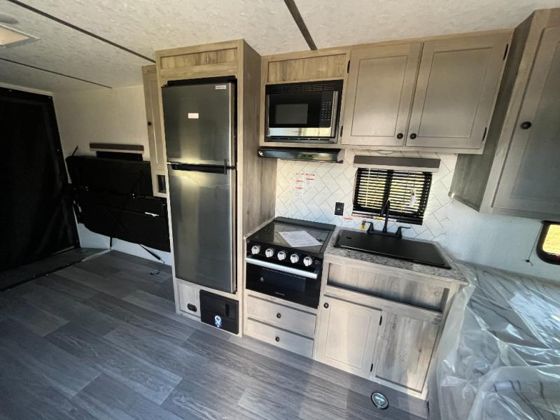 With premium features and a practical design, this toy hauler is the ultimate companion for your next escapade! The 66" sofa invites you to relax and unwind, while the adjacent area is perfect for setting up your gear or enjoying a meal. The refrigerator keeps your snacks and drinks fresh, and the three-burner stove is ready to whip up a hearty meal. Also, the sink and ample counter space make meal prep a breeze, while the nearby storage keeps everything you need within easy reach. The full bathroom is a welcome retreat, featuring a spacious 24 x 32 shower that's perfect for rinsing off after a long day of adventure, and the 60 x 74 bed is a cozy haven, perfect for recharging after a day of exploring. Plus, the generous cargo area is ideal for hauling your toys, gear, and equipment, so you can bring everything you need for the ultimate adventure.
