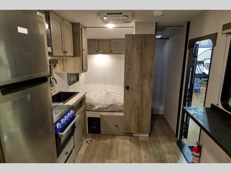 You can trust the build and enjoy your experience with any one of these Sunset Park RV Sun Lite travel trailers! Their aerodynamic profile is not only easy to haul, but also saves on fuel. They are built to withstand years of traveling even though they are lightweight with a diamond plate rock guard, a one piece PVC roof membrane, Dexter Spring-Leaf axles, and tinted safety glass windows. Some comfort standards you are sure to enjoy are the two-burner stove top range with hood, light and fan, plus the refrigerator and microwave, and an outside shower to help keep the dirt outdoors where it belongs.