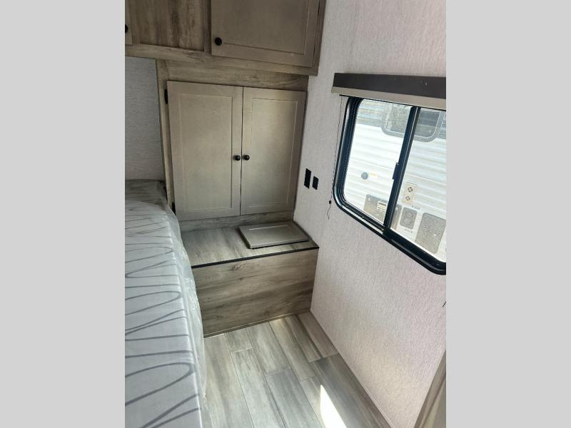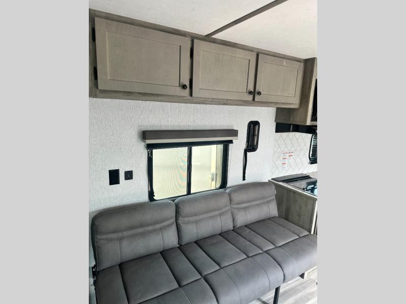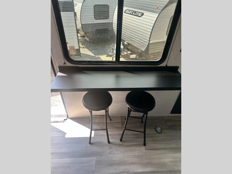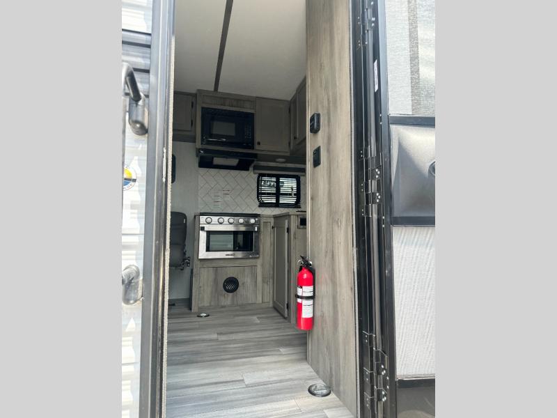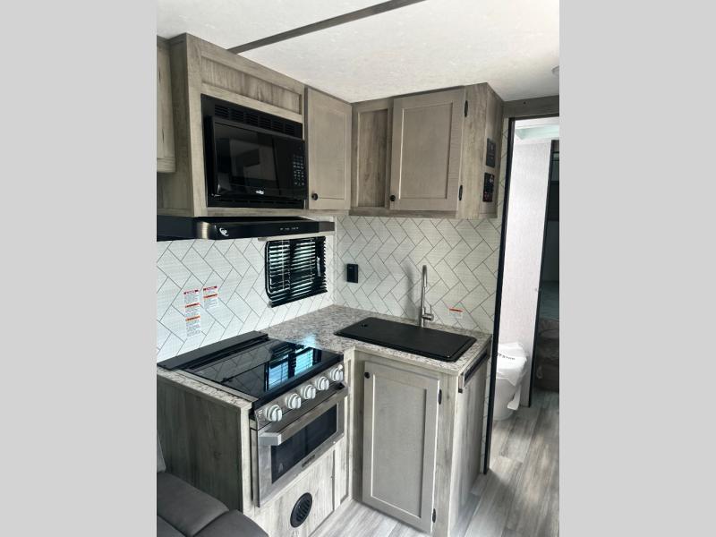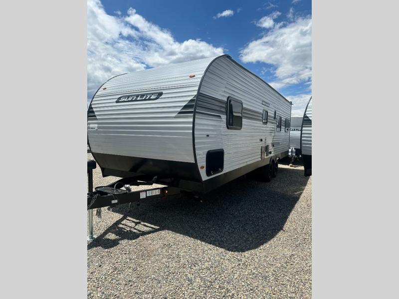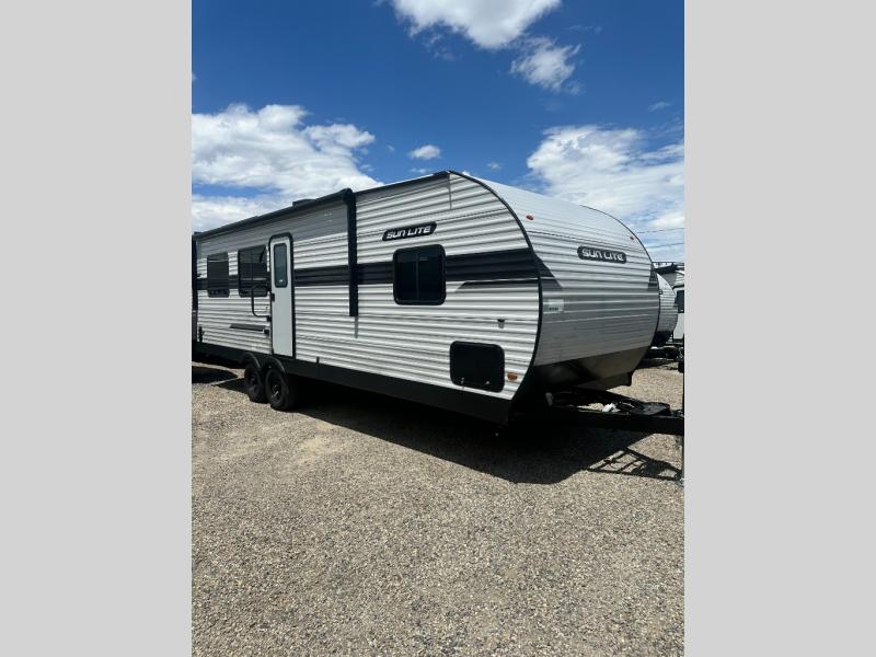 You can trust the build and enjoy your experience with any one of these Sunset Park RV Sun Lite travel trailers! Their aerodynamic profile is not only easy to haul, but also saves on fuel. They are built to withstand years of traveling even though they are lightweight with a diamond plate rock guard, a one piece PVC roof membrane, Dexter Spring-Leaf axles, and tinted safety glass windows. Some comfort standards you are sure to enjoy are the two-burner stove top range with hood, light and fan, plus the refrigerator and microwave, and an outside shower to help keep the dirt outdoors where it belongs.