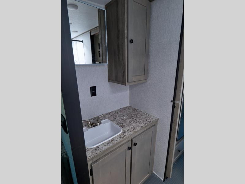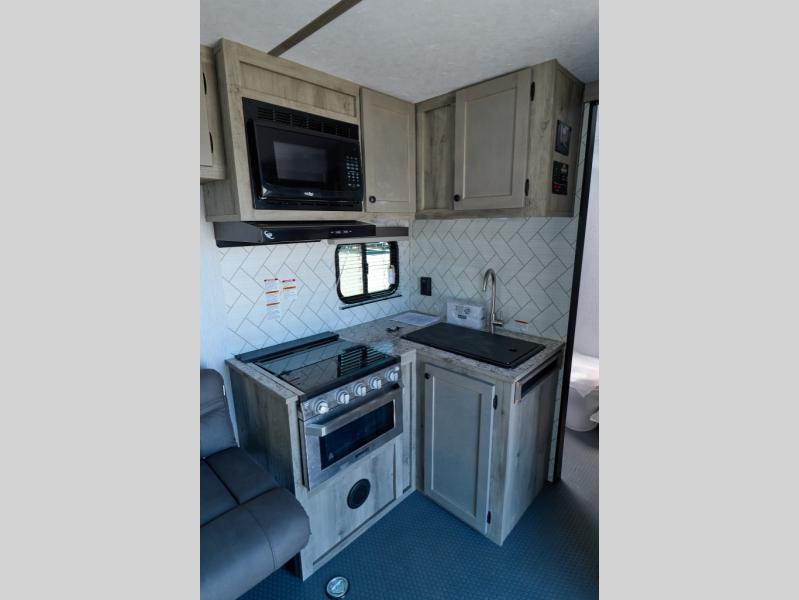 You can trust the build and enjoy your experience with any one of these Sunset Park RV Sun Lite travel trailers! Their aerodynamic profile is not only easy to haul, but also saves on fuel. They are built to withstand years of traveling even though they are lightweight with a diamond plate rock guard, a one piece PVC roof membrane, Dexter Spring-Leaf axles, and tinted safety glass windows. Some comfort standards you are sure to enjoy are the two-burner stove top range with hood, light and fan, plus the refrigerator and microwave, and an outside shower to help keep the dirt outdoors where it belongs.