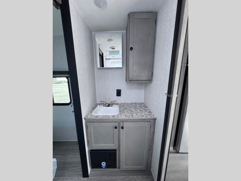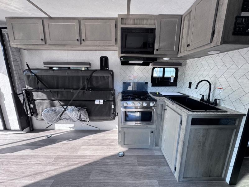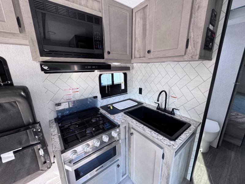 You can trust the build and enjoy your experience with any one of these Sunset Park RV Sun Lite travel trailers! Their aerodynamic profile is not only easy to haul, but also saves on fuel. They are built to withstand years of traveling even though they are lightweight with a diamond plate rock guard, a one piece PVC roof membrane, Dexter Spring-Leaf axles, and tinted safety glass windows. Some comfort standards you are sure to enjoy are the two-burner stove top range with hood, light and fan, plus the refrigerator and microwave, and an outside shower to help keep the dirt outdoors where it belongs.