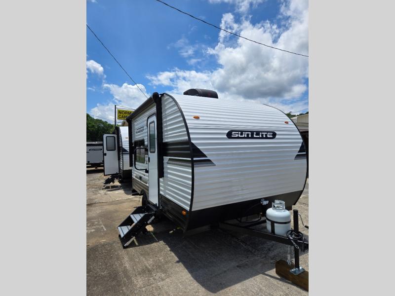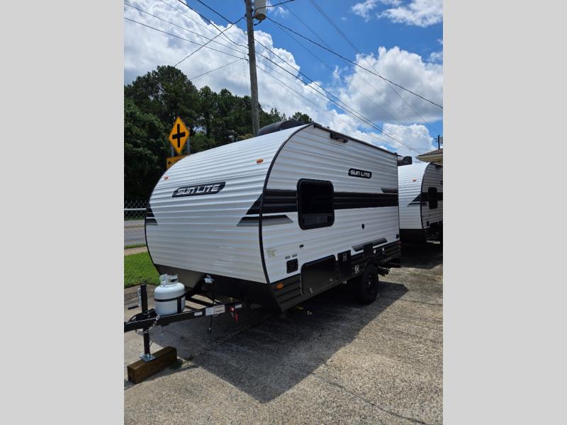 Each Sun Lite LTD travel trailer by Sunset Park RV is made with flexibility in mind. These lightweight models weigh under 3,000 lbs. for easy towing, and they offer best-in class interior storage for all your belongings. They are built with a one-piece PVC roof membrane and a durable rock guard that will help protect against rock and debris on the way to the campground. There is also an electric awning outside, along with a 100-watt solar kit, an outside shower, and more convenient features. You'll find a power roof vent in the bath, stylish window treatments, ball bearing drawer guides, and LED lights to name a few interior comforts.