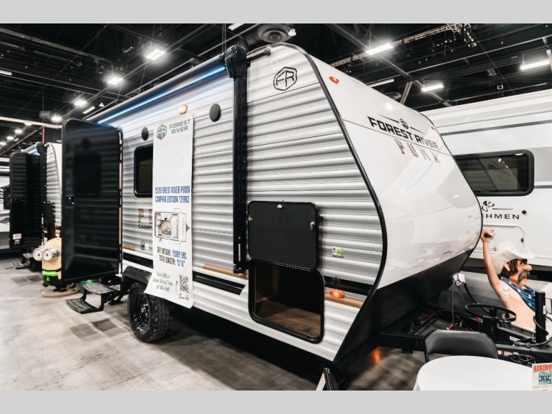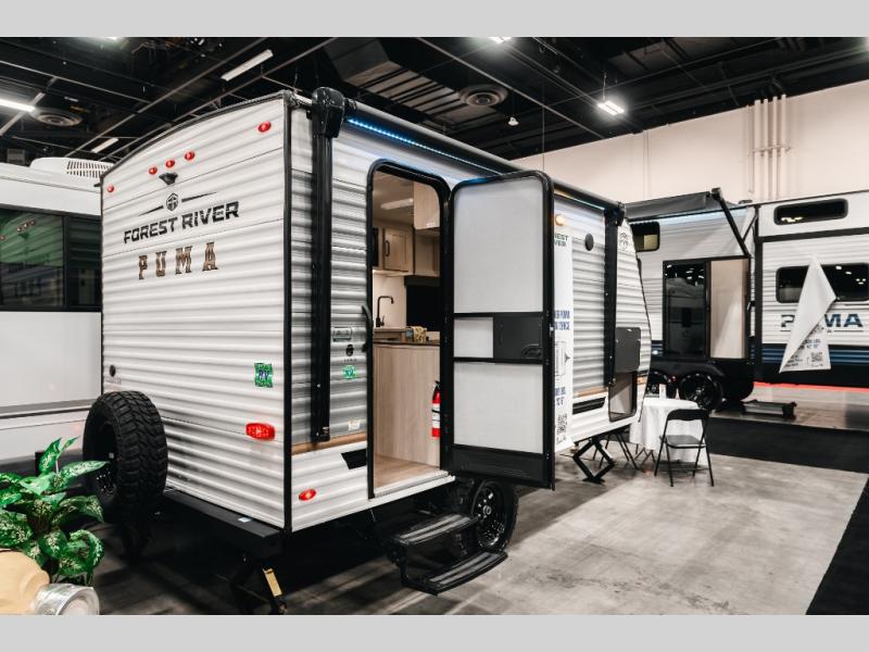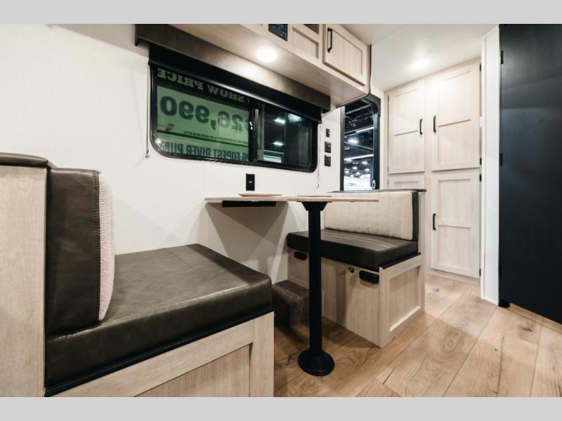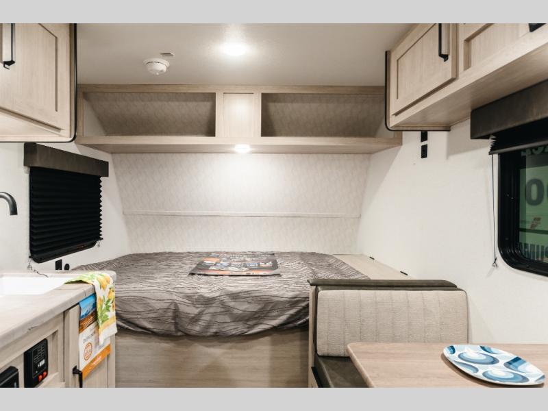 This lightweight travel trailer is perfect for two to three campers each night! You will sleep soundly on the front 54" x 74" bed with an overhead shelf and a closet for your things. Whip up eggs and bacon on the two burner cooktop in the morning, then dine at the 30" booth dinette. This can also double as sleeping space for an overnight guest or two little ones! The private bath with a 24" x 32" shower and a toilet will let you freshen up each day, and the double sink in the kitchen provides a place to wash your hands and teeth at night. You will also appreciate having a 4.3 cu. ft. 12V refrigerator to keep your food fresh and a 5K BTU wall A/C to keep you comfortable all summer long!