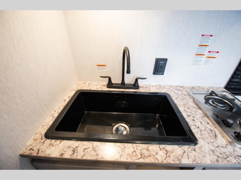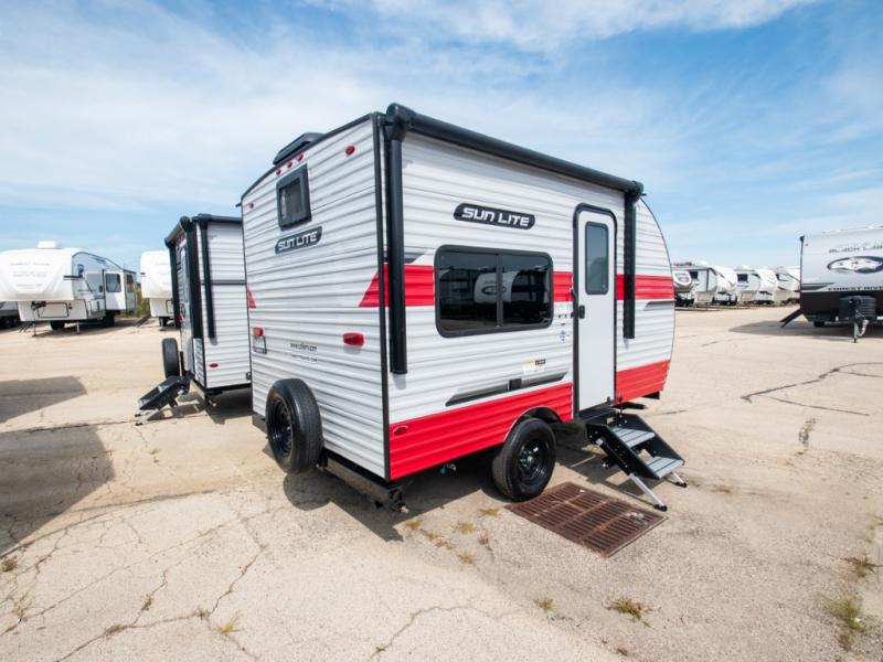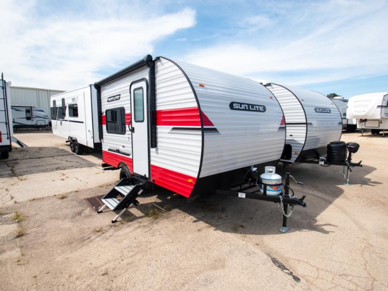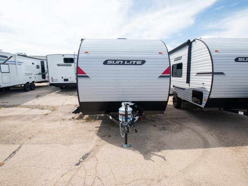 Each Sun Lite LTD travel trailer by Sunset Park RV is made with flexibility in mind. These lightweight models weigh under 3,000 lbs. for easy towing, and they offer best-in class interior storage for all your belongings. They are built with a one-piece PVC roof membrane and a durable rock guard that will help protect against rock and debris on the way to the campground. There is also an electric awning outside, along with a 100-watt solar kit, an outside shower, and more convenient features. You'll find a power roof vent in the bath, stylish window treatments, ball bearing drawer guides, and LED lights to name a few interior comforts.