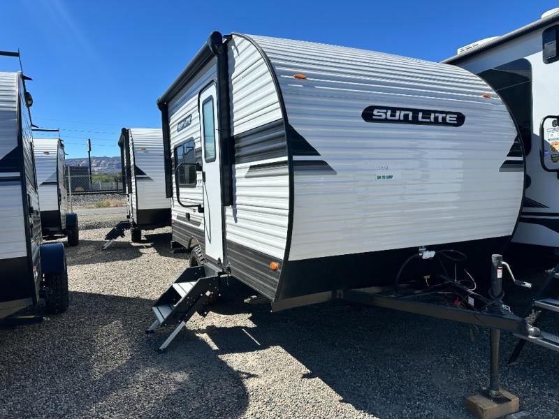 Each Sun Lite LTD travel trailer by Sunset Park RV is made with flexibility in mind. These lightweight models weigh under 3,000 lbs. for easy towing, and they offer best-in class interior storage for all your belongings. They are built with a one-piece PVC roof membrane and a durable rock guard that will help protect against rock and debris on the way to the campground. There is also an electric awning outside, along with a 100-watt solar kit, an outside shower, and more convenient features. You'll find a power roof vent in the bath, stylish window treatments, ball bearing drawer guides, and LED lights to name a few interior comforts.