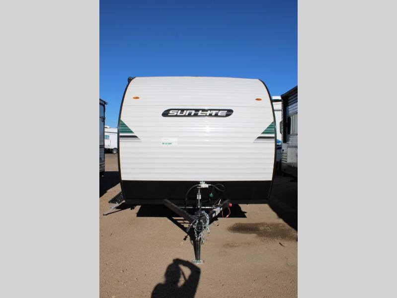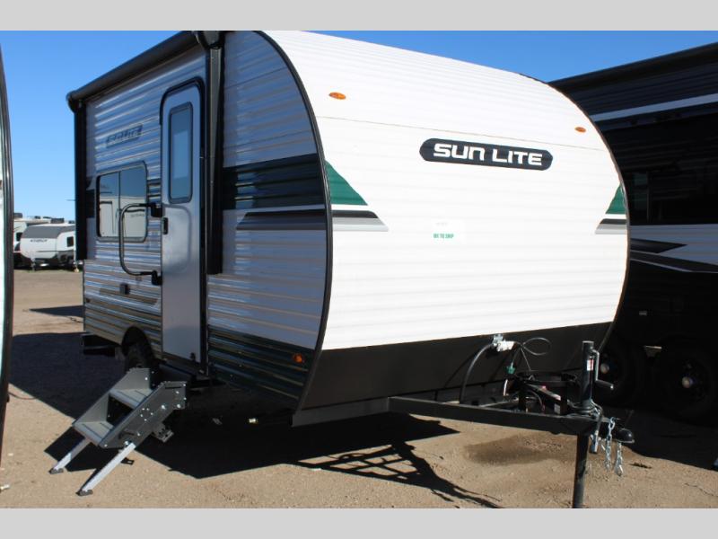 Each Sun Lite LTD travel trailer by Sunset Park RV is made with flexibility in mind. These lightweight models weigh under 3,000 lbs. for easy towing, and they offer best-in class interior storage for all your belongings. They are built with a one-piece PVC roof membrane and a durable rock guard that will help protect against rock and debris on the way to the campground. There is also an electric awning outside, along with a 100-watt solar kit, an outside shower, and more convenient features. You'll find a power roof vent in the bath, stylish window treatments, ball bearing drawer guides, and LED lights to name a few interior comforts.