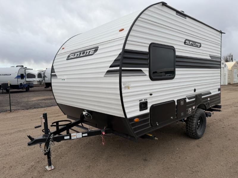 Each Sun Lite LTD travel trailer by Sunset Park RV is made with flexibility in mind. These lightweight models weigh under 3,000 lbs. for easy towing, and they offer best-in class interior storage for all your belongings. They are built with a one-piece PVC roof membrane and a durable rock guard that will help protect against rock and debris on the way to the campground. There is also an electric awning outside, along with a 100-watt solar kit, an outside shower, and more convenient features. You'll find a power roof vent in the bath, stylish window treatments, ball bearing drawer guides, and LED lights to name a few interior comforts.