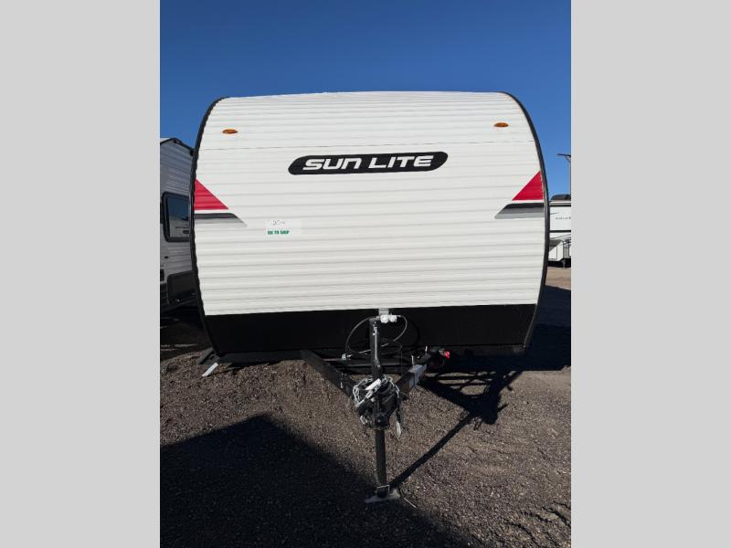 Each Sun Lite LTD travel trailer by Sunset Park RV is made with flexibility in mind. These lightweight models weigh under 3,000 lbs. for easy towing, and they offer best-in class interior storage for all your belongings. They are built with a one-piece PVC roof membrane and a durable rock guard that will help protect against rock and debris on the way to the campground. There is also an electric awning outside, along with a 100-watt solar kit, an outside shower, and more convenient features. You'll find a power roof vent in the bath, stylish window treatments, ball bearing drawer guides, and LED lights to name a few interior comforts.