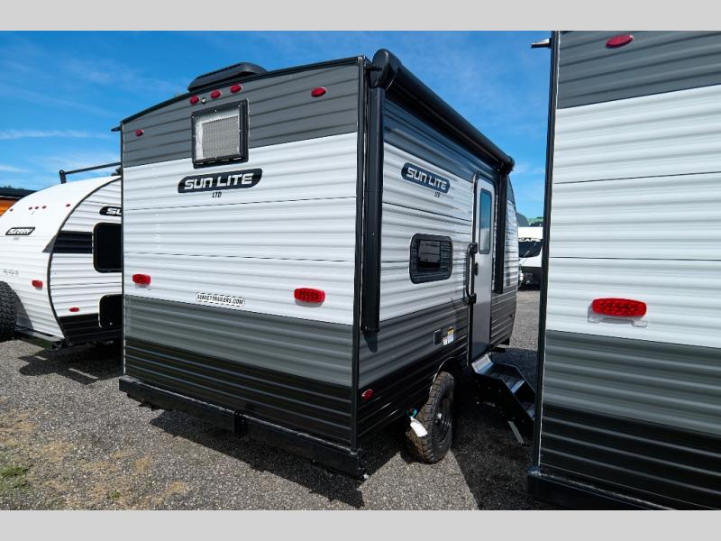 Each Sun Lite LTD travel trailer by Sunset Park RV is made with flexibility in mind. These lightweight models weigh under 3,000 lbs. for easy towing, and they offer best-in class interior storage for all your belongings. There are wood framed sidewalls, .024" aluminum siding, plus 3/8" fully walkable roof decking for added durability. The spring-leaf Dexter axles and radial tires will make towing easier than ever, and the front and rear stabilizer jacks will provide a secure foundation when you're set up at the campground. A 100W solar kit with a controller is also included, along with a 20 lb. LP tank, and a power awning for protection against the elements. Inside, you'll find a power vent in the bathroom, LED lights, USB ports, and cable/satellite hookups. And the LTD Appliance Package also comes standard with a 12V refrigerator, a two burner stove, a DSI gas water heater, plus a 5k BTU A/C and a 16k BTU furnace!
