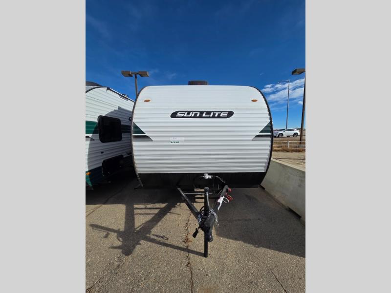 Each Sun Lite LTD travel trailer by Sunset Park RV is made with flexibility in mind. These lightweight models weigh under 3,000 lbs. for easy towing, and they offer best-in class interior storage for all your belongings. They are built with a one-piece PVC roof membrane and a durable rock guard that will help protect against rock and debris on the way to the campground. There is also an electric awning outside, along with a 100-watt solar kit, an outside shower, and more convenient features. You'll find a power roof vent in the bath, stylish window treatments, ball bearing drawer guides, and LED lights to name a few interior comforts.