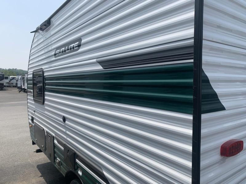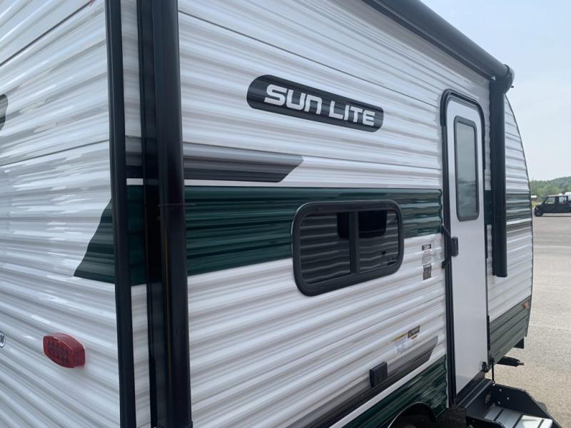 Each Sun Lite LTD travel trailer by Sunset Park RV is made with flexibility in mind. These lightweight models weigh under 3,000 lbs. for easy towing, and they offer best-in class interior storage for all your belongings. They are built with a one-piece PVC roof membrane and a durable rock guard that will help protect against rock and debris on the way to the campground. There is also an electric awning outside, along with a 100-watt solar kit, an outside shower, and more convenient features. You'll find a power roof vent in the bath, stylish window treatments, ball bearing drawer guides, and LED lights to name a few interior comforts.