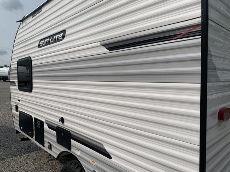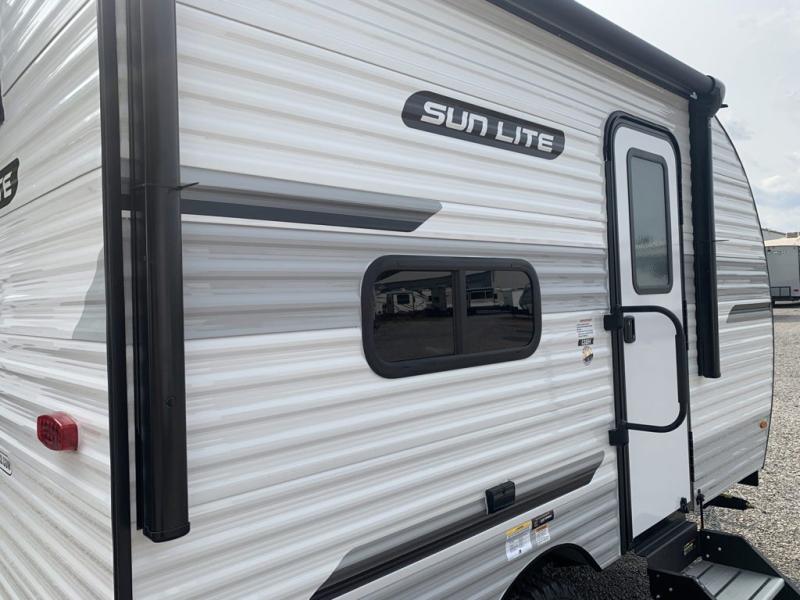 Each Sun Lite LTD travel trailer by Sunset Park RV is made with flexibility in mind. These lightweight models weigh under 3,000 lbs. for easy towing, and they offer best-in class interior storage for all your belongings. They are built with a one-piece PVC roof membrane and a durable rock guard that will help protect against rock and debris on the way to the campground. There is also an electric awning outside, along with a 100-watt solar kit, an outside shower, and more convenient features. You'll find a power roof vent in the bath, stylish window treatments, ball bearing drawer guides, and LED lights to name a few interior comforts.
