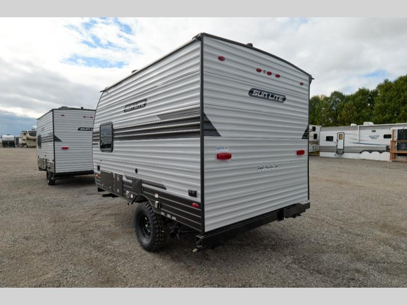 Each Sun Lite LTD travel trailer by Sunset Park RV is made with flexibility in mind. These lightweight models weigh under 3,000 lbs. for easy towing, and they offer best-in class interior storage for all your belongings. There are wood framed sidewalls, .024" aluminum siding, plus 3/8" fully walkable roof decking for added durability. The spring-leaf Dexter axles and radial tires will make towing easier than ever, and the front and rear stabilizer jacks will provide a secure foundation when you're set up at the campground. A 100W solar kit with a controller is also included, along with a 20 lb. LP tank, and a power awning for protection against the elements. Inside, you'll find a power vent in the bathroom, LED lights, USB ports, and cable/satellite hookups. And the LTD Appliance Package also comes standard with a 12V refrigerator, a two burner stove, a DSI gas water heater, plus a 5k BTU A/C and a 16k BTU furnace!