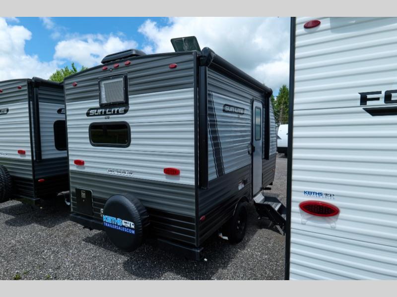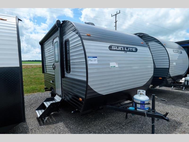 Each Sun Lite LTD travel trailer by Sunset Park RV is made with flexibility in mind. These lightweight models weigh under 3,000 lbs. for easy towing, and they offer best-in class interior storage for all your belongings. There are wood framed sidewalls, .024" aluminum siding, plus 3/8" fully walkable roof decking for added durability. The spring-leaf Dexter axles and radial tires will make towing easier than ever, and the front and rear stabilizer jacks will provide a secure foundation when you're set up at the campground. A 100W solar kit with a controller is also included, along with a 20 lb. LP tank, and a power awning for protection against the elements. Inside, you'll find a power vent in the bathroom, LED lights, USB ports, and cable/satellite hookups. And the LTD Appliance Package also comes standard with a 12V refrigerator, a two burner stove, a DSI gas water heater, plus a 5k BTU A/C and a 16k BTU furnace!