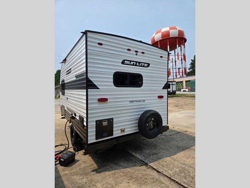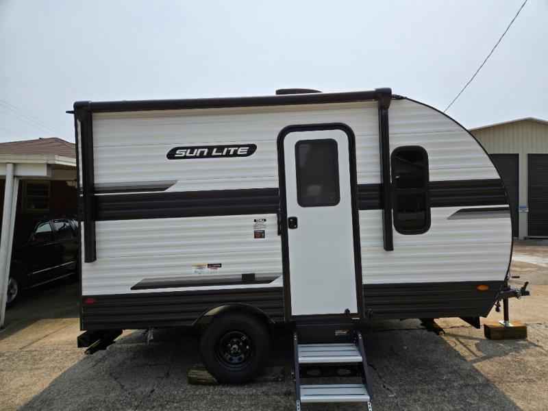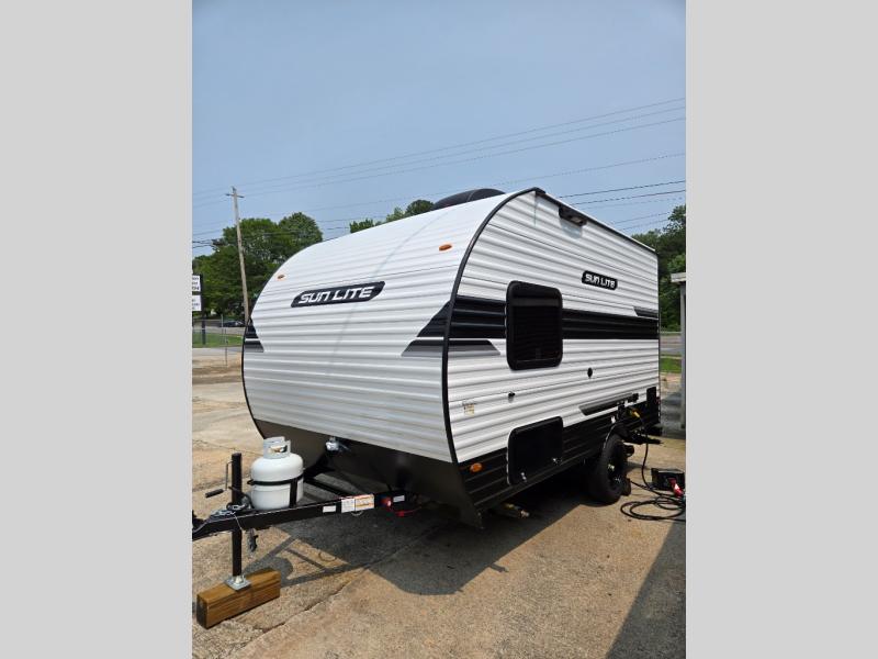 Each Sun Lite LTD travel trailer by Sunset Park RV is made with flexibility in mind. These lightweight models weigh under 3,000 lbs. for easy towing, and they offer best-in class interior storage for all your belongings. They are built with a one-piece PVC roof membrane and a durable rock guard that will help protect against rock and debris on the way to the campground. There is also an electric awning outside, along with a 100-watt solar kit, an outside shower, and more convenient features. You'll find a power roof vent in the bath, stylish window treatments, ball bearing drawer guides, and LED lights to name a few interior comforts.
