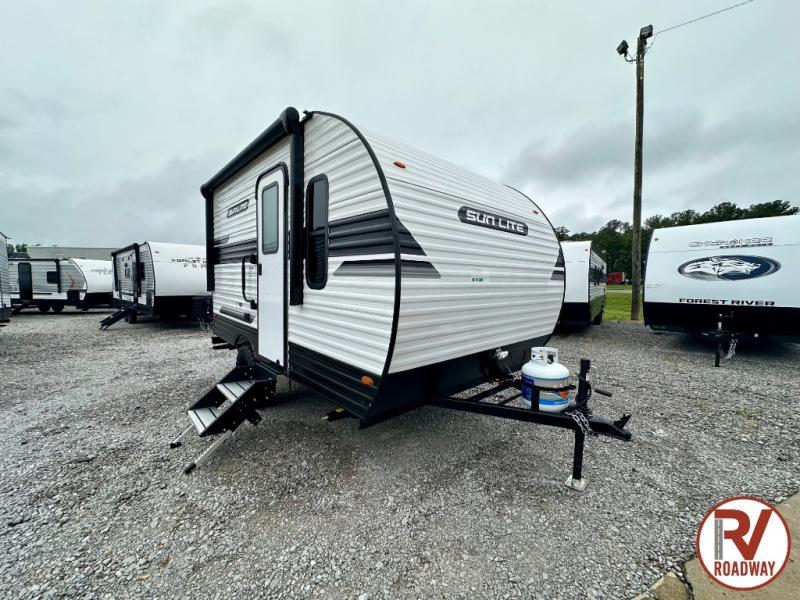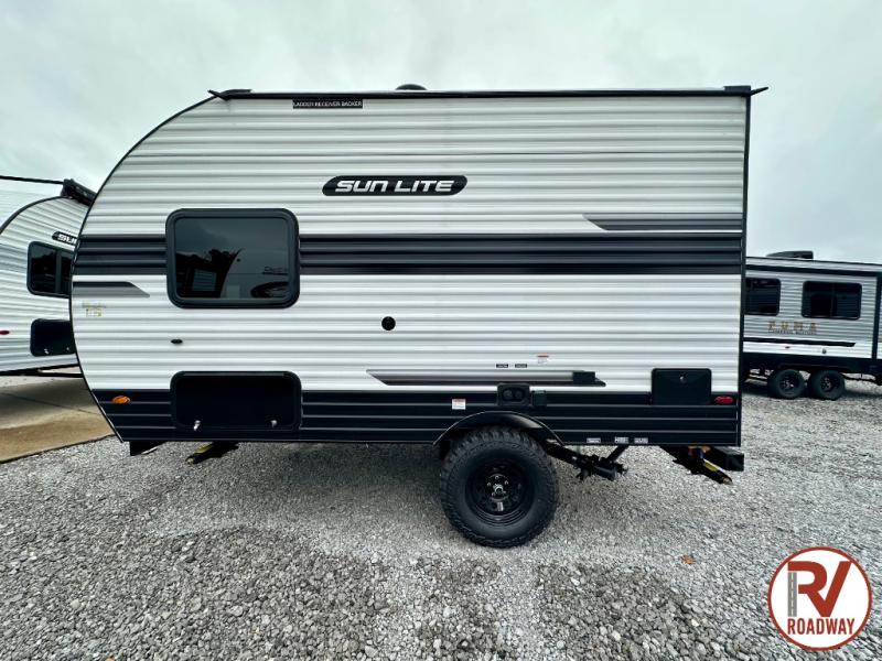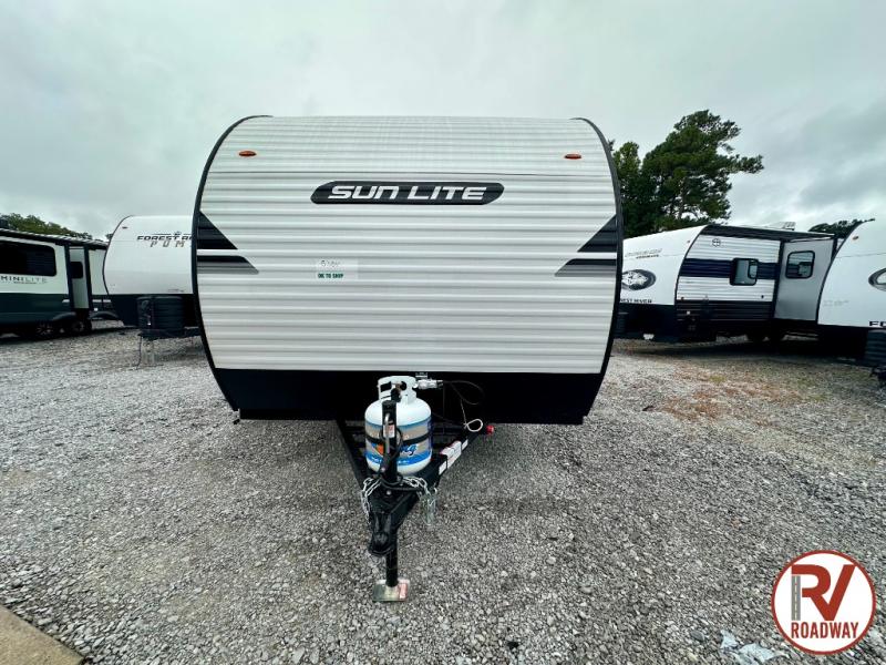 Each Sun Lite LTD travel trailer by Sunset Park RV is made with flexibility in mind. These lightweight models weigh under 3,000 lbs. for easy towing, and they offer best-in class interior storage for all your belongings. They are built with a one-piece PVC roof membrane and a durable rock guard that will help protect against rock and debris on the way to the campground. There is also an electric awning outside, along with a 100-watt solar kit, an outside shower, and more convenient features. You'll find a power roof vent in the bath, stylish window treatments, ball bearing drawer guides, and LED lights to name a few interior comforts.