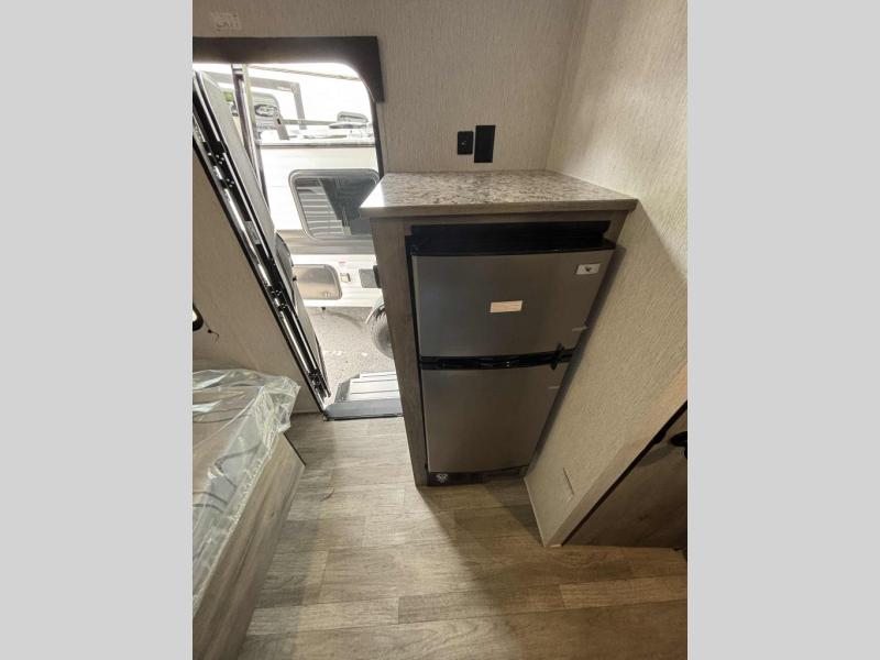 Each Sun Lite LTD travel trailer by Sunset Park RV is made with flexibility in mind. These lightweight models weigh under 3,000 lbs. for easy towing, and they offer best-in class interior storage for all your belongings. They are built with a one-piece PVC roof membrane and a durable rock guard that will help protect against rock and debris on the way to the campground. There is also an electric awning outside, along with a 100-watt solar kit, an outside shower, and more convenient features. You'll find a power roof vent in the bath, stylish window treatments, ball bearing drawer guides, and LED lights to name a few interior comforts.