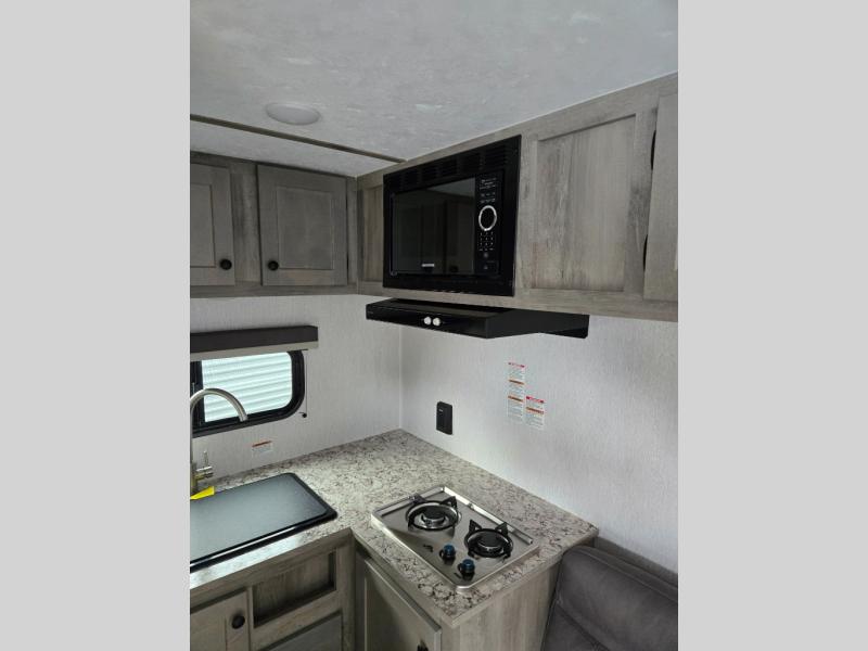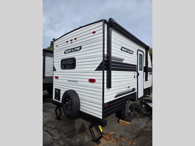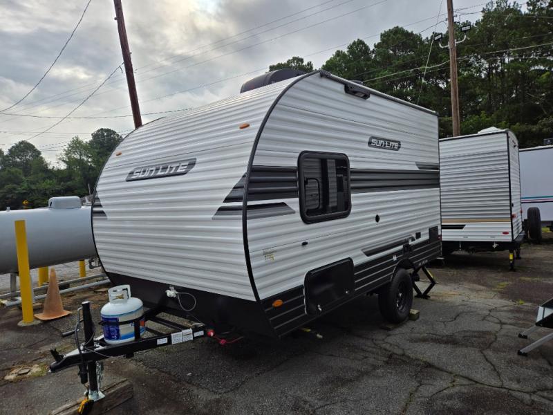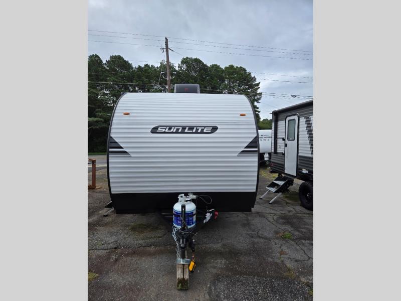 Each Sun Lite LTD travel trailer by Sunset Park RV is made with flexibility in mind. These lightweight models weigh under 3,000 lbs. for easy towing, and they offer best-in class interior storage for all your belongings. They are built with a one-piece PVC roof membrane and a durable rock guard that will help protect against rock and debris on the way to the campground. There is also an electric awning outside, along with a 100-watt solar kit, an outside shower, and more convenient features. You'll find a power roof vent in the bath, stylish window treatments, ball bearing drawer guides, and LED lights to name a few interior comforts.