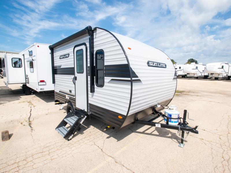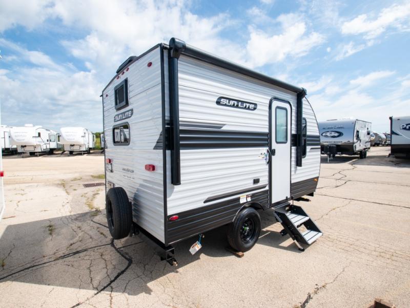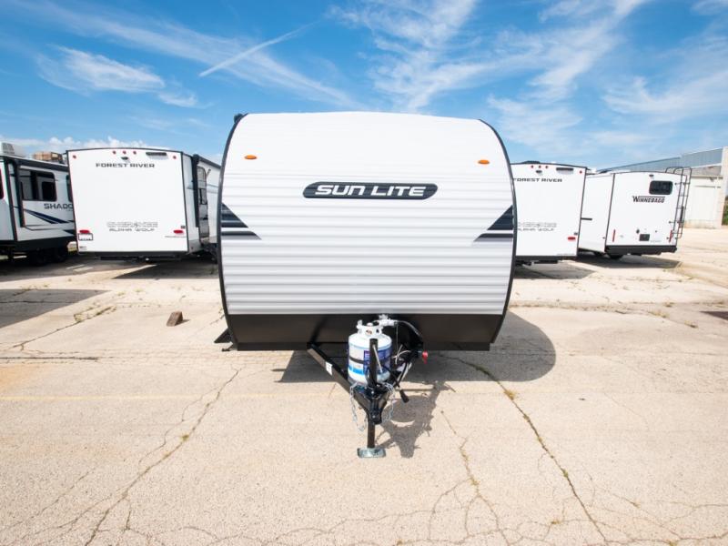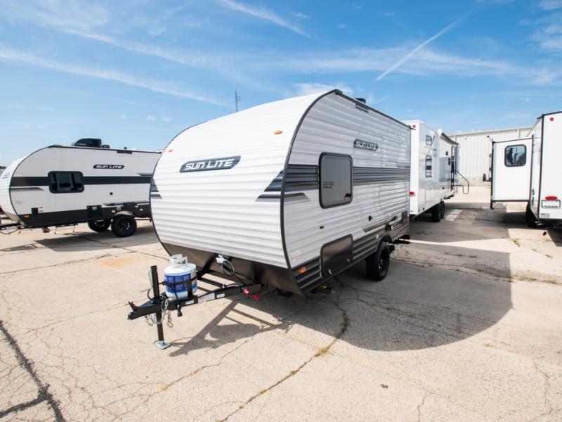 Each Sun Lite LTD travel trailer by Sunset Park RV is made with flexibility in mind. These lightweight models weigh under 3,000 lbs. for easy towing, and they offer best-in class interior storage for all your belongings. They are built with a one-piece PVC roof membrane and a durable rock guard that will help protect against rock and debris on the way to the campground. There is also an electric awning outside, along with a 100-watt solar kit, an outside shower, and more convenient features. You'll find a power roof vent in the bath, stylish window treatments, ball bearing drawer guides, and LED lights to name a few interior comforts.