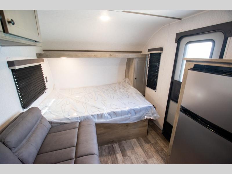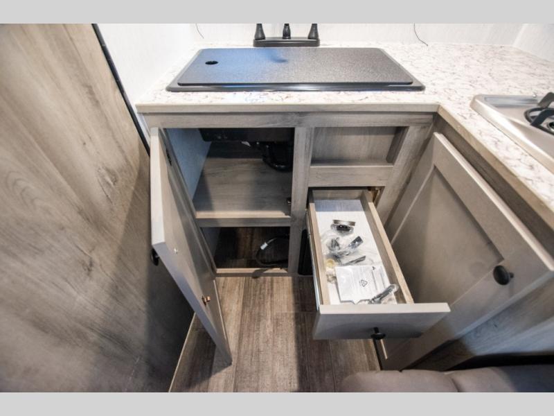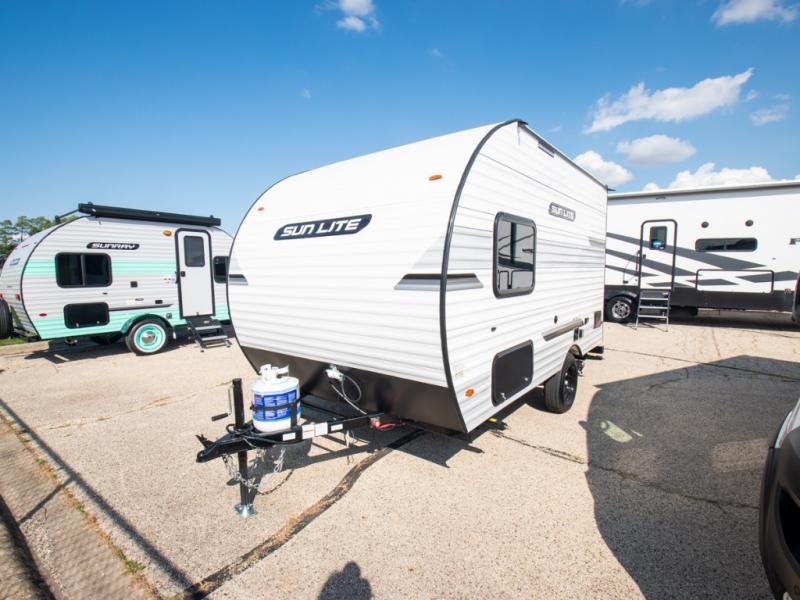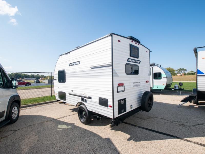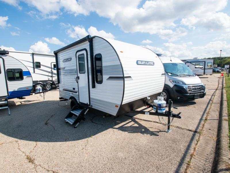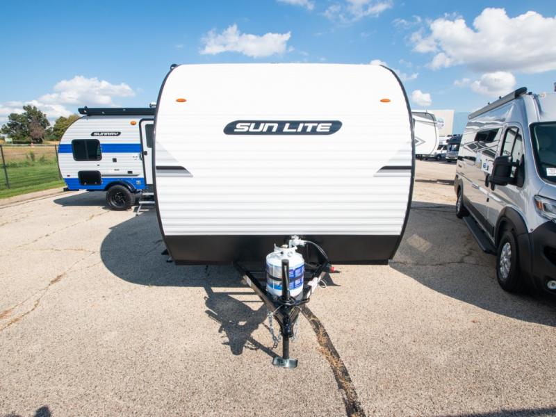 Each Sun Lite LTD travel trailer by Sunset Park RV is made with flexibility in mind. These lightweight models weigh under 3,000 lbs. for easy towing, and they offer best-in class interior storage for all your belongings. They are built with a one-piece PVC roof membrane and a durable rock guard that will help protect against rock and debris on the way to the campground. There is also an electric awning outside, along with a 100-watt solar kit, an outside shower, and more convenient features. You'll find a power roof vent in the bath, stylish window treatments, ball bearing drawer guides, and LED lights to name a few interior comforts.