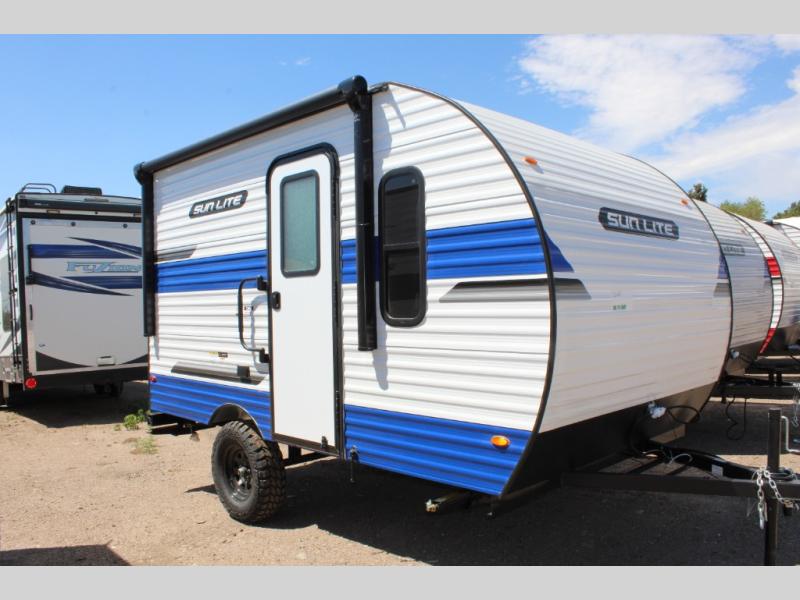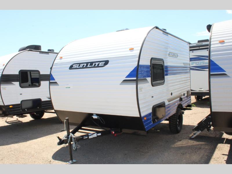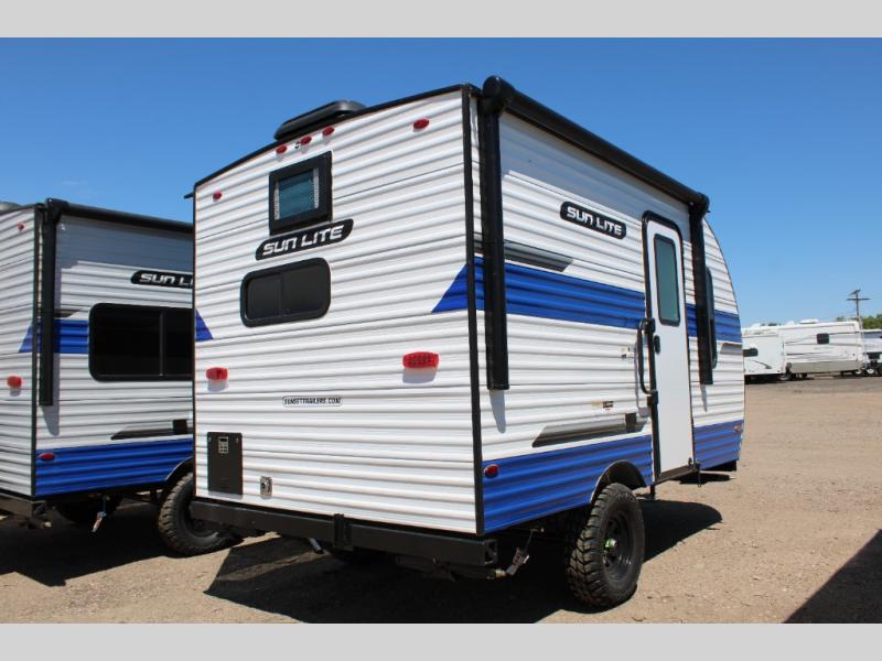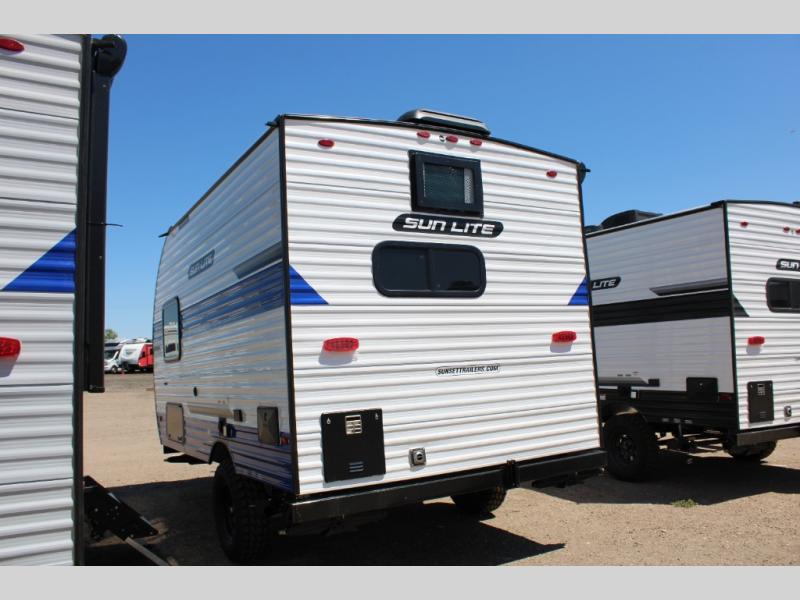 Each Sun Lite LTD travel trailer by Sunset Park RV is made with flexibility in mind. These lightweight models weigh under 3,000 lbs. for easy towing, and they offer best-in class interior storage for all your belongings. They are built with a one-piece PVC roof membrane and a durable rock guard that will help protect against rock and debris on the way to the campground. There is also an electric awning outside, along with a 100-watt solar kit, an outside shower, and more convenient features. You'll find a power roof vent in the bath, stylish window treatments, ball bearing drawer guides, and LED lights to name a few interior comforts.