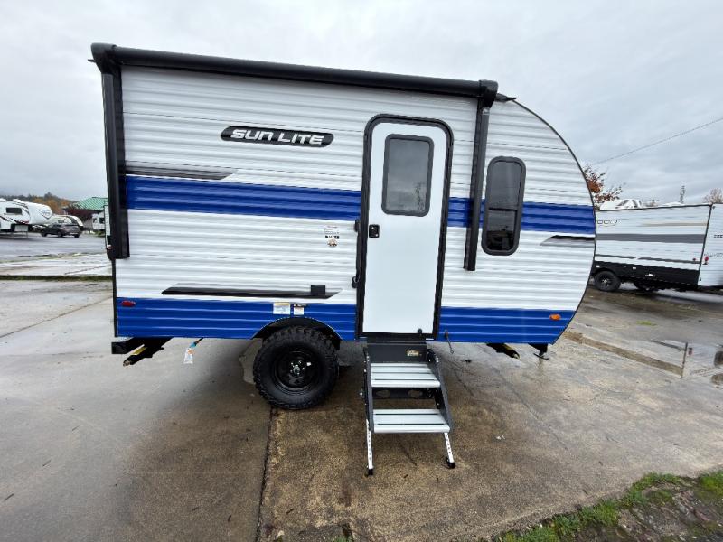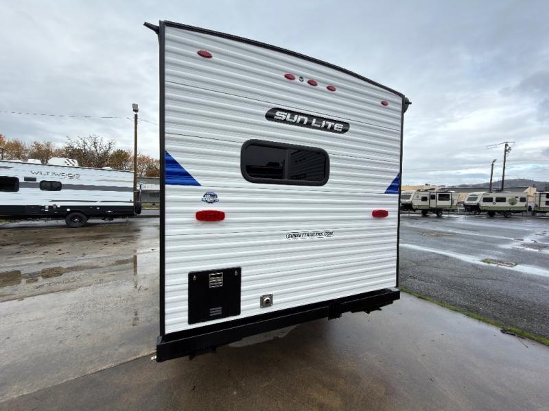 Each Sun Lite LTD travel trailer by Sunset Park RV is made with flexibility in mind. These lightweight models weigh under 3,000 lbs. for easy towing, and they offer best-in class interior storage for all your belongings. They are built with a one-piece PVC roof membrane and a durable rock guard that will help protect against rock and debris on the way to the campground. There is also an electric awning outside, along with a 100-watt solar kit, an outside shower, and more convenient features. You'll find a power roof vent in the bath, stylish window treatments, ball bearing drawer guides, and LED lights to name a few interior comforts.