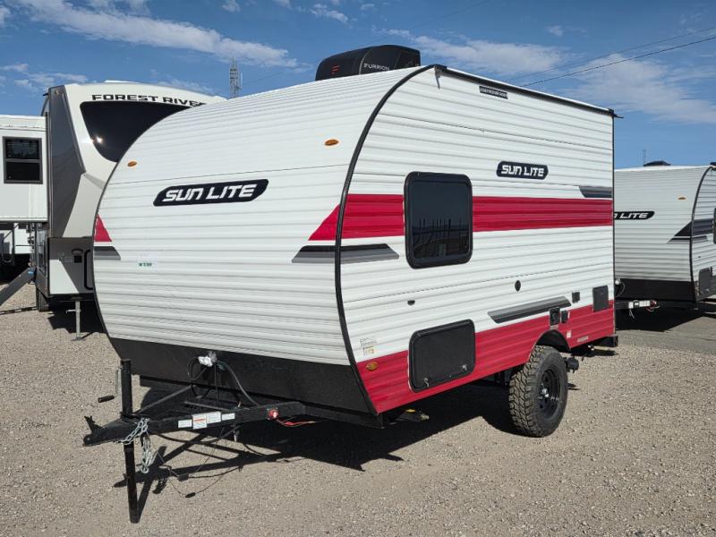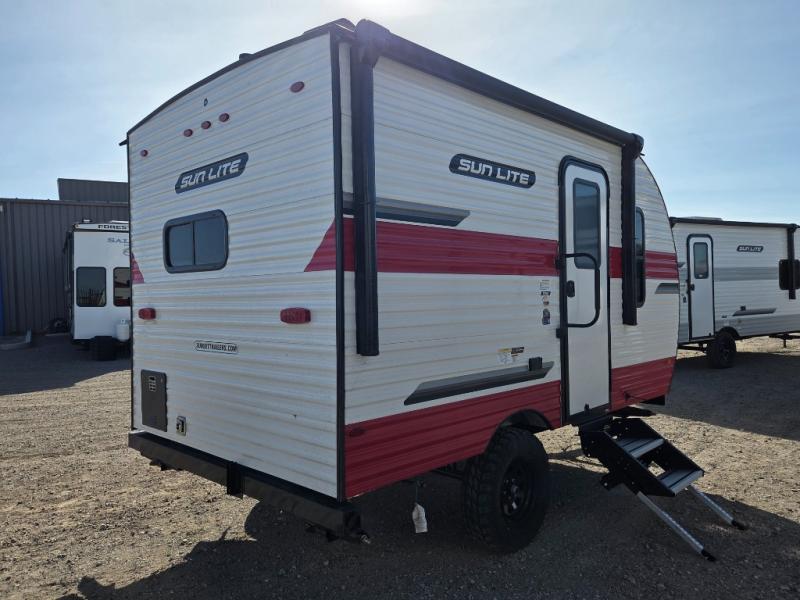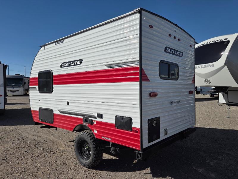 Each Sun Lite LTD travel trailer by Sunset Park RV is made with flexibility in mind. These lightweight models weigh under 3,000 lbs. for easy towing, and they offer best-in class interior storage for all your belongings. They are built with a one-piece PVC roof membrane and a durable rock guard that will help protect against rock and debris on the way to the campground. There is also an electric awning outside, along with a 100-watt solar kit, an outside shower, and more convenient features. You'll find a power roof vent in the bath, stylish window treatments, ball bearing drawer guides, and LED lights to name a few interior comforts.
