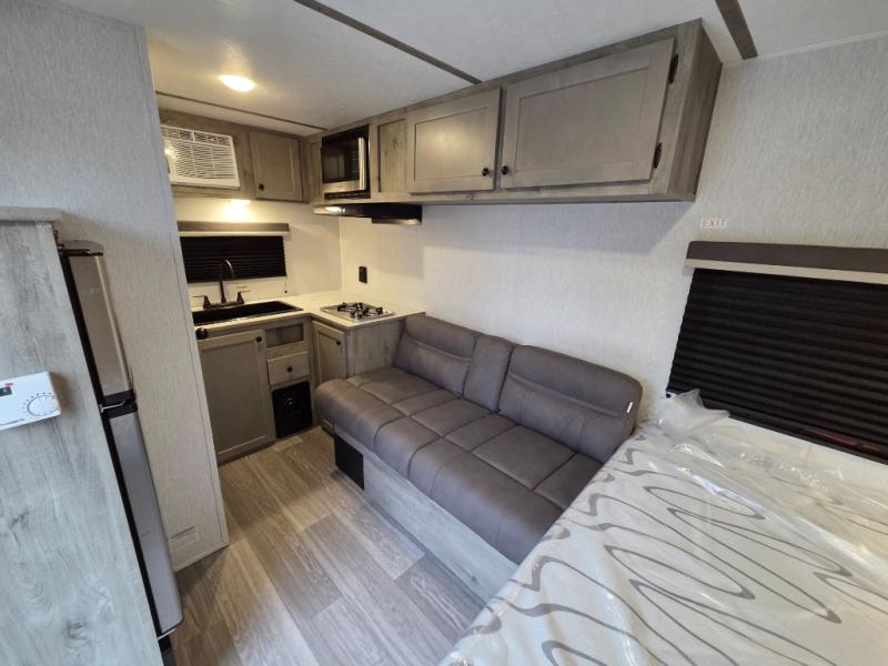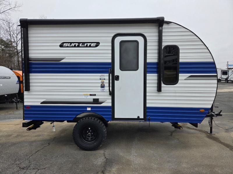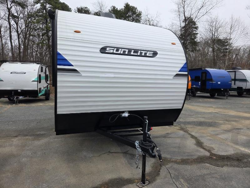 Each Sun Lite LTD travel trailer by Sunset Park RV is made with flexibility in mind. These lightweight models weigh under 3,000 lbs. for easy towing, and they offer best-in class interior storage for all your belongings. They are built with a one-piece PVC roof membrane and a durable rock guard that will help protect against rock and debris on the way to the campground. There is also an electric awning outside, along with a 100-watt solar kit, an outside shower, and more convenient features. You'll find a power roof vent in the bath, stylish window treatments, ball bearing drawer guides, and LED lights to name a few interior comforts.