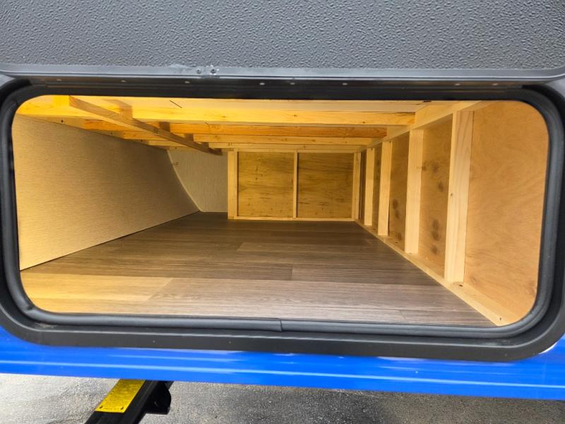 You'll love camping in this cozy trailer! Once you arrive at the campground, you can set up the 9' power awning and head inside to unpack your bags. After you've stretched your legs on a hike, the rear corner private bath with a 24" x 32" shower and a toilet will let you freshen up. You'll find the kitchen in the other rear corner, complete with a two burner cooktop, a double sink, plus counter space to prep meals. When you're ready for some shut-eye, the front 54" x 74" full-size bed will provide a great night's rest, while your guest takes the 56" jiffy sofa!