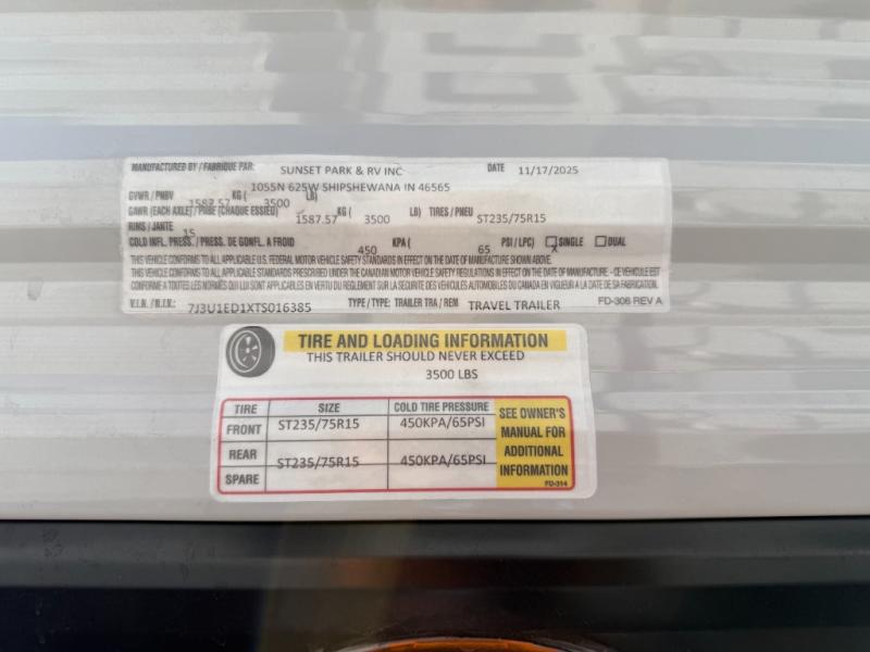 New 2026 Sunset Park RV Sun Lite LTD 13MJ Travel Trailer