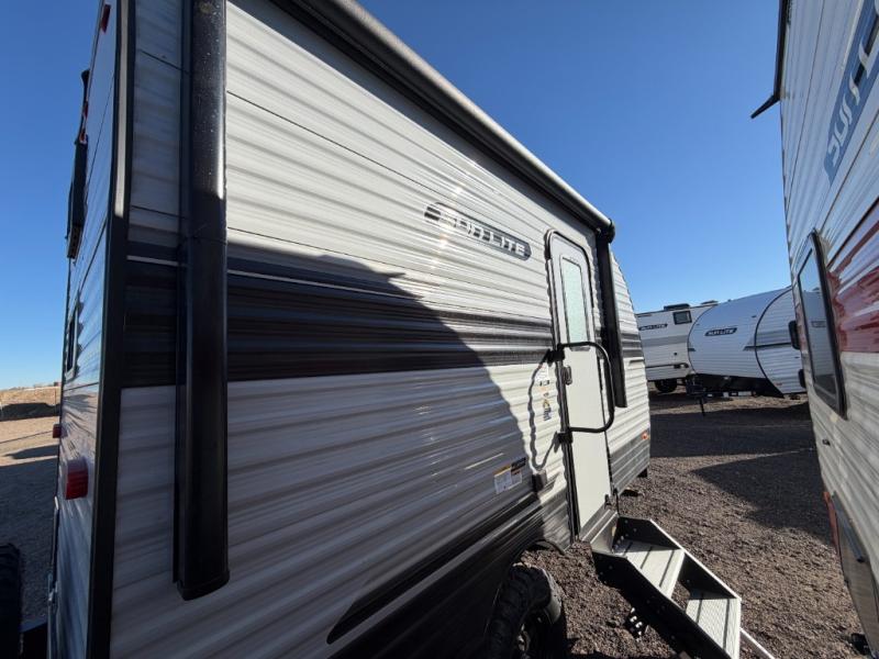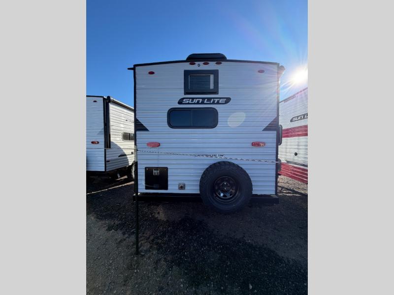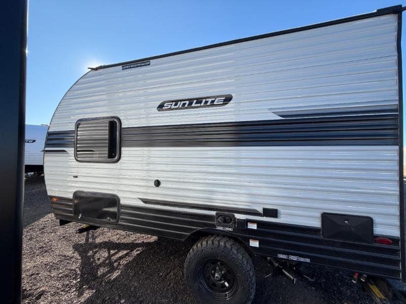 Each Sun Lite LTD travel trailer by Sunset Park RV is made with flexibility in mind. These lightweight models weigh under 3,000 lbs. for easy towing, and they offer best-in class interior storage for all your belongings. They are built with a one-piece PVC roof membrane and a durable rock guard that will help protect against rock and debris on the way to the campground. There is also an electric awning outside, along with a 100-watt solar kit, an outside shower, and more convenient features. You'll find a power roof vent in the bath, stylish window treatments, ball bearing drawer guides, and LED lights to name a few interior comforts.