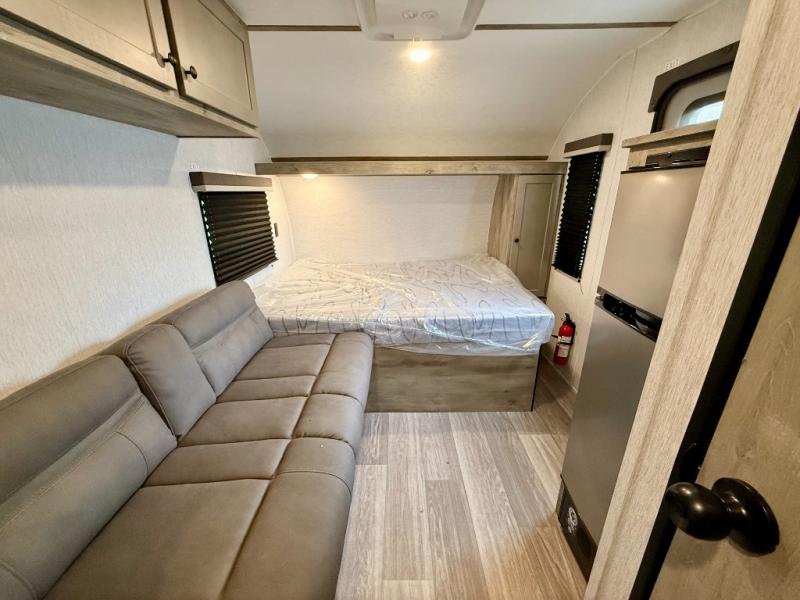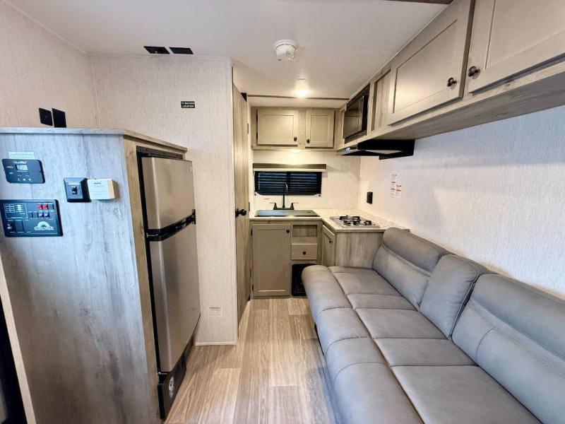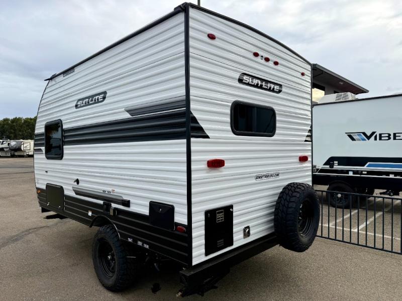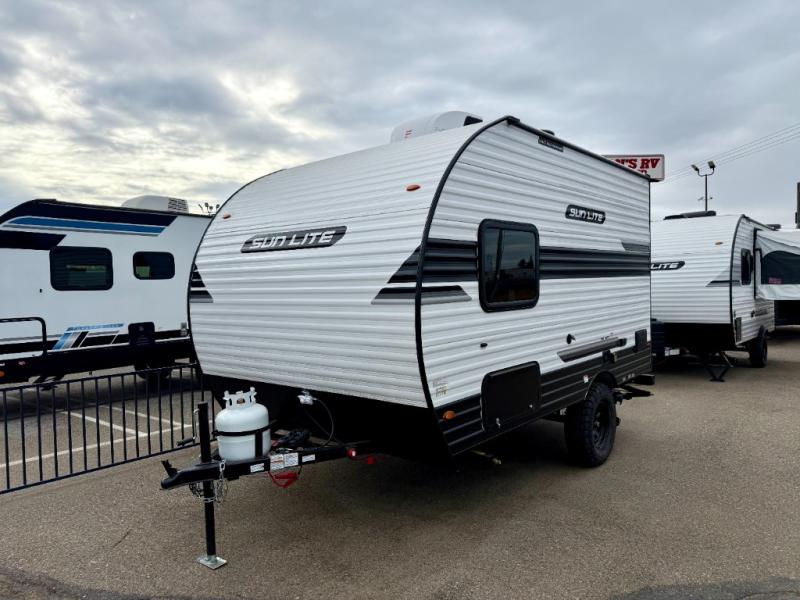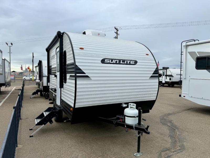 Each Sun Lite LTD travel trailer by Sunset Park RV is made with flexibility in mind. These lightweight models weigh under 3,000 lbs. for easy towing, and they offer best-in class interior storage for all your belongings. They are built with a one-piece PVC roof membrane and a durable rock guard that will help protect against rock and debris on the way to the campground. There is also an electric awning outside, along with a 190-watt solar kit, an outside shower, and more convenient features. You'll find a power roof vent in the bath, stylish window treatments, ball bearing drawer guides, and LED lights to name a few interior comforts.