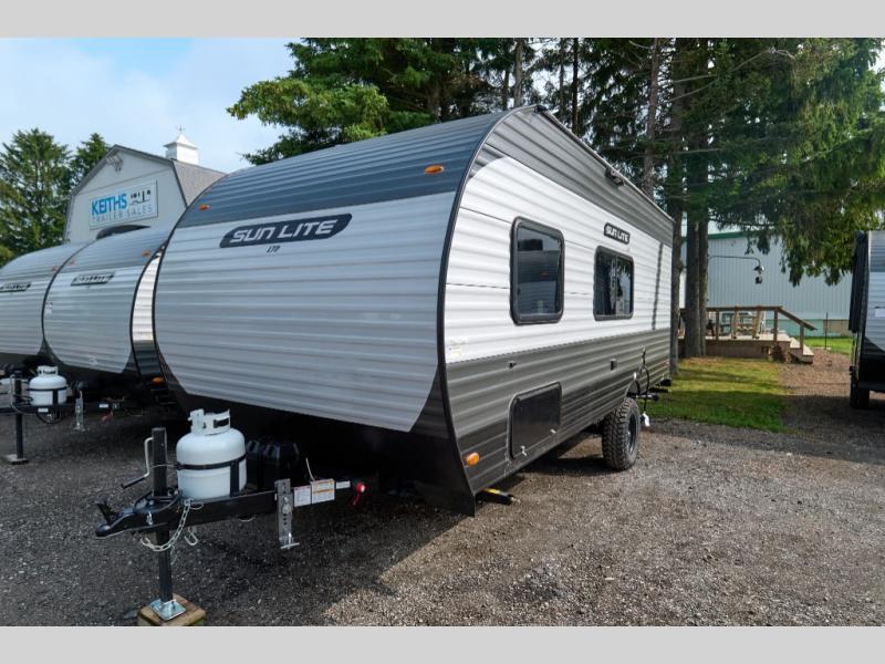 Each Sun Lite LTD travel trailer by Sunset Park RV is made with flexibility in mind. These lightweight models weigh under 3,000 lbs. for easy towing, and they offer best-in class interior storage for all your belongings. There are wood framed sidewalls, .024" aluminum siding, plus 3/8" fully walkable roof decking for added durability. The spring-leaf Dexter axles and radial tires will make towing easier than ever, and the front and rear stabilizer jacks will provide a secure foundation when you're set up at the campground. A 100W solar kit with a controller is also included, along with a 20 lb. LP tank, and a power awning for protection against the elements. Inside, you'll find a power vent in the bathroom, LED lights, USB ports, and cable/satellite hookups. And the LTD Appliance Package also comes standard with a 12V refrigerator, a two burner stove, a DSI gas water heater, plus a 5k BTU A/C and a 16k BTU furnace!