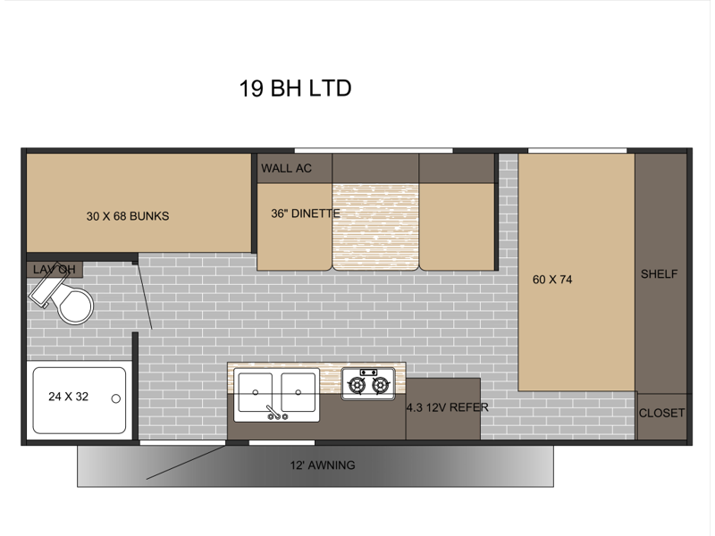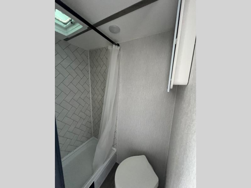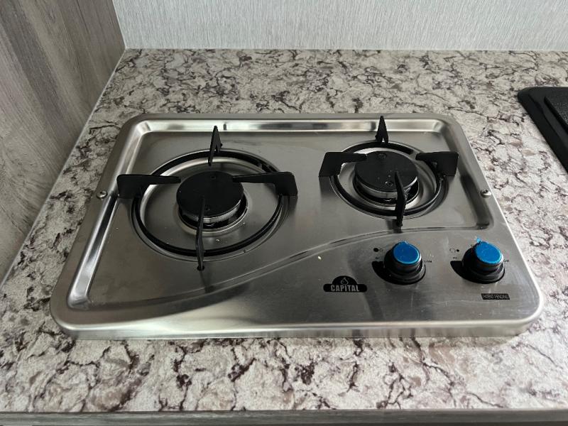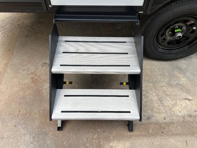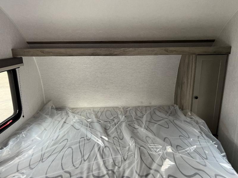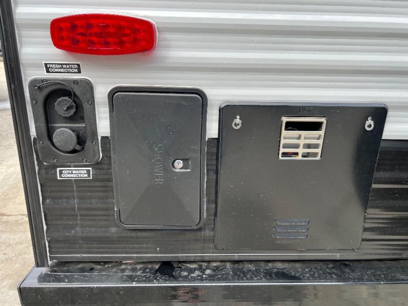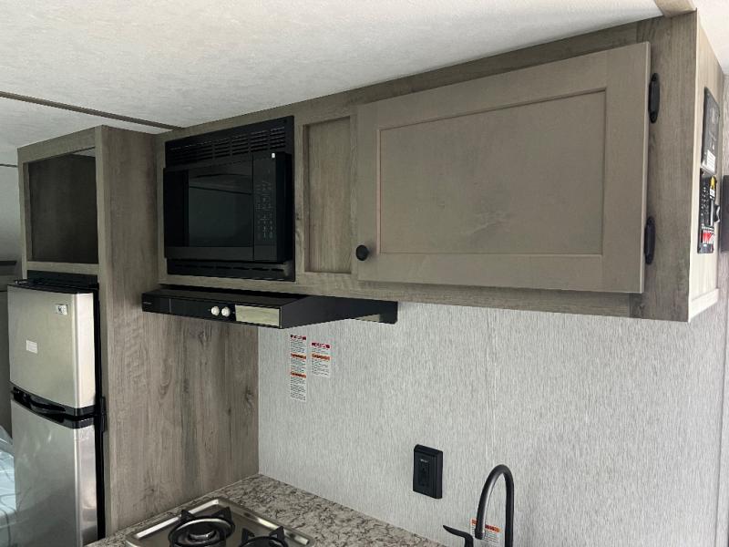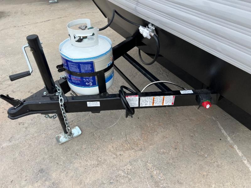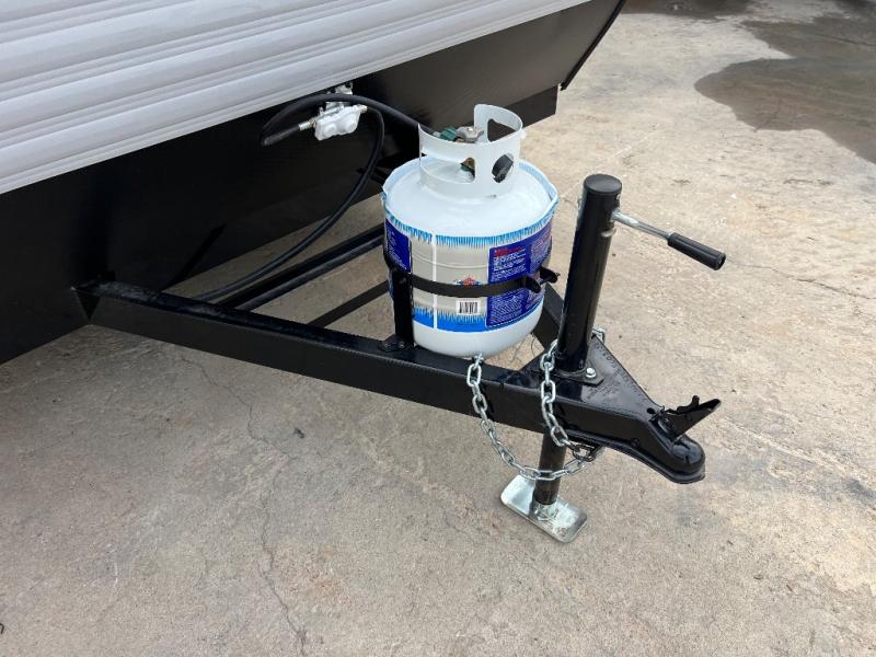 If you've been wanting to ditch that old tent and upgrade to a travel trailer, this easy-to-tow unit is the one! You will have a front RV queen bed to sleep on instead of an air mattress or cot, and there are even bunk beds in the back for the little ones. The bathroom includes a shower and a toilet so you don't have to use the camp's facilities in the middle of the night, and there is a closet plus a shelf by the front bed for storage space. You will love having a kitchen to cook meals in that include a two burner stove, a 4.3 cu. ft. 12V refrigerator, plus a double sink for easy clean up. When dinner is ready, you can dine at the 30" booth dinette and play a game of cards when everything is cleaned up!