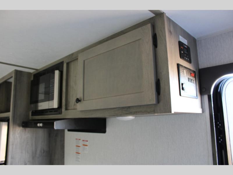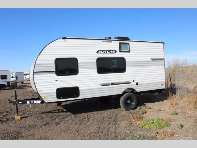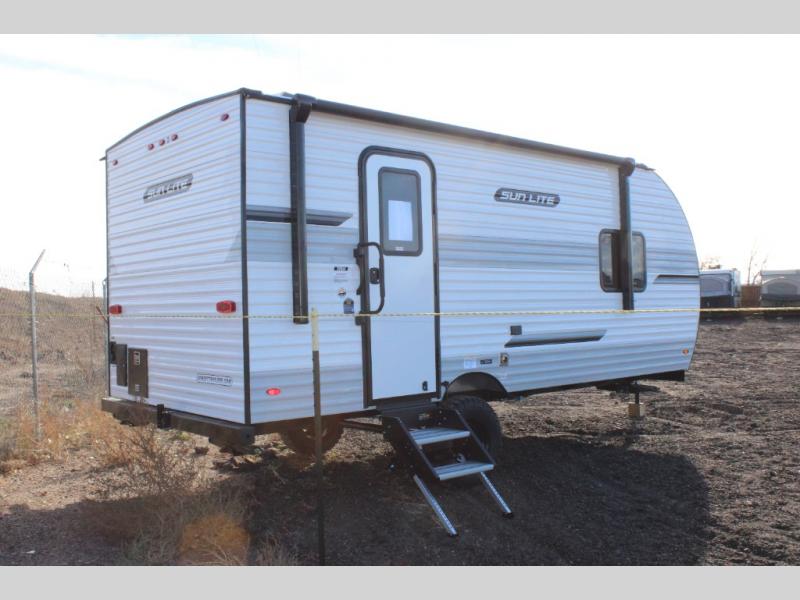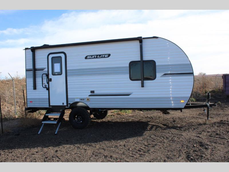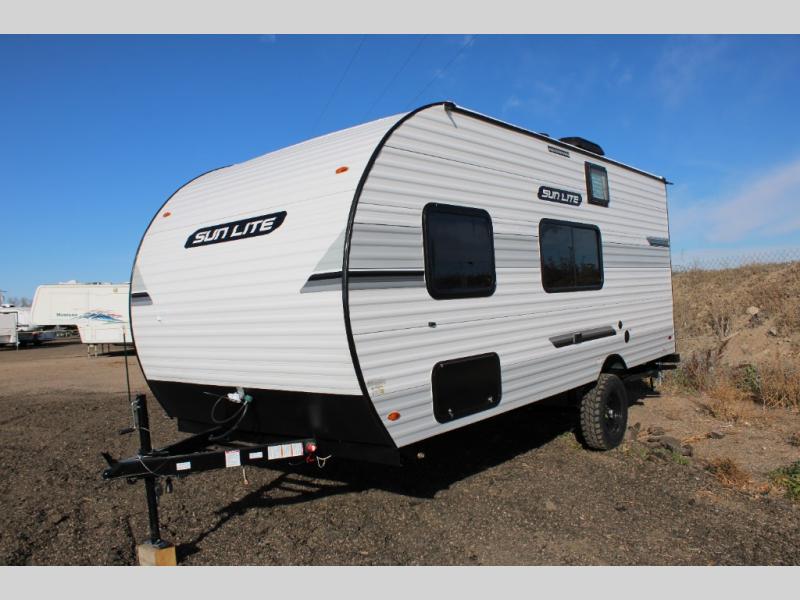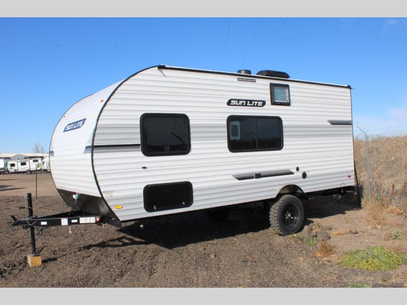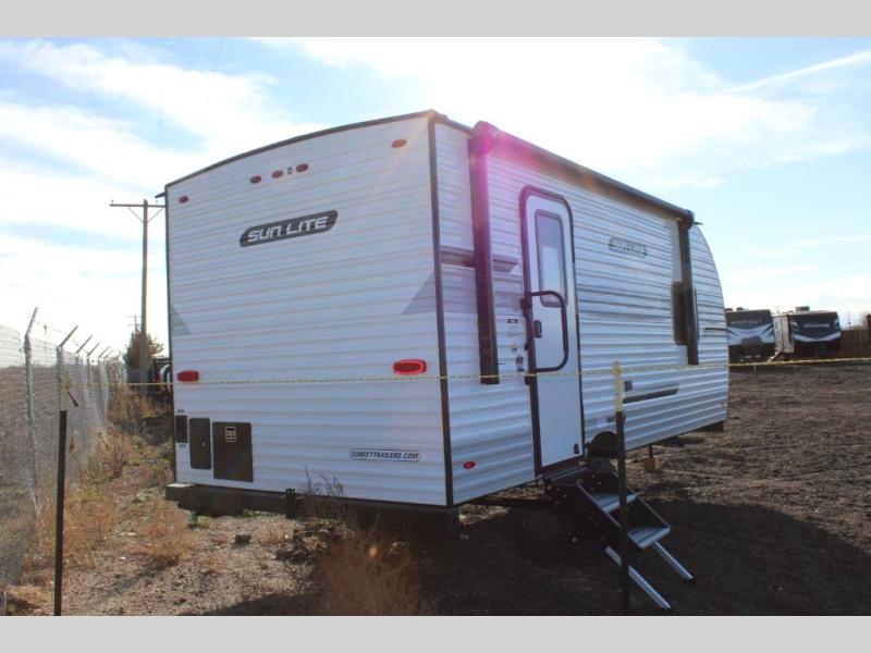 Each Sun Lite LTD travel trailer by Sunset Park RV is made with flexibility in mind. These lightweight models weigh under 3,000 lbs. for easy towing, and they offer best-in class interior storage for all your belongings. They are built with a one-piece PVC roof membrane and a durable rock guard that will help protect against rock and debris on the way to the campground. There is also an electric awning outside, along with a 100-watt solar kit, an outside shower, and more convenient features. You'll find a power roof vent in the bath, stylish window treatments, ball bearing drawer guides, and LED lights to name a few interior comforts.