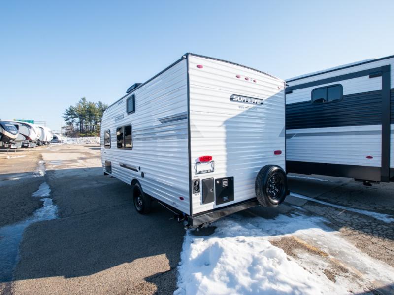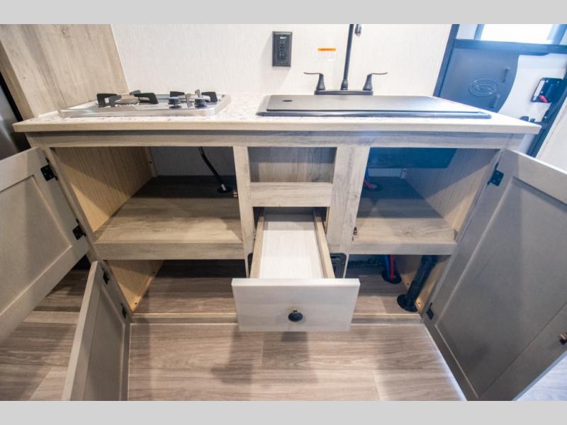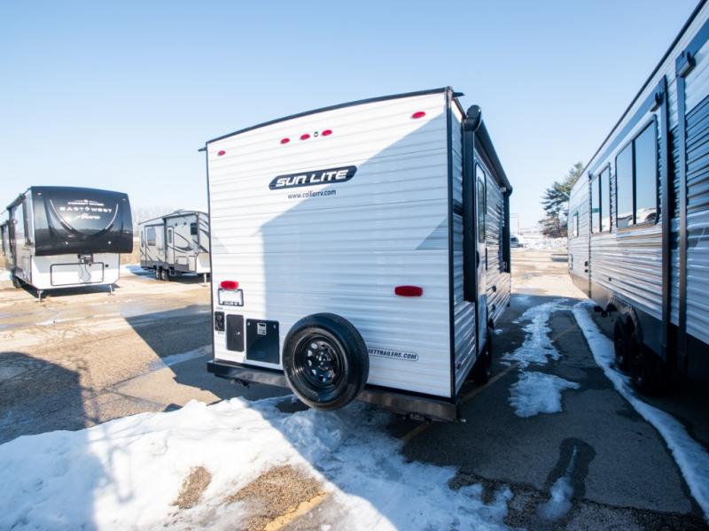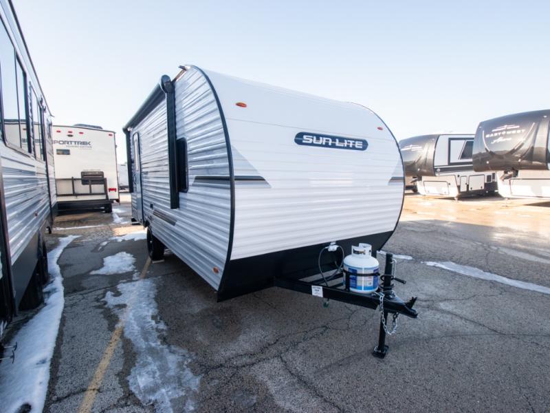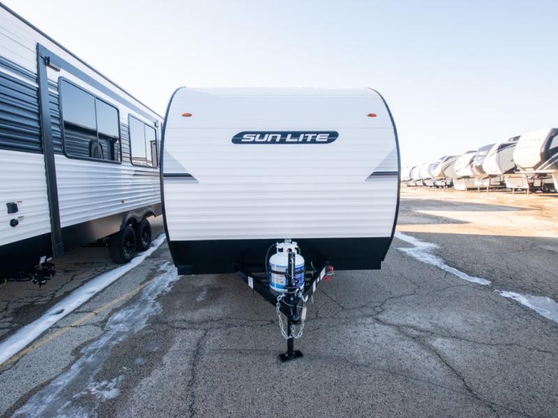 Each Sun Lite LTD travel trailer by Sunset Park RV is made with flexibility in mind. These lightweight models weigh under 3,000 lbs. for easy towing, and they offer best-in class interior storage for all your belongings. They are built with a one-piece PVC roof membrane and a durable rock guard that will help protect against rock and debris on the way to the campground. There is also an electric awning outside, along with a 100-watt solar kit, an outside shower, and more convenient features. You'll find a power roof vent in the bath, stylish window treatments, ball bearing drawer guides, and LED lights to name a few interior comforts.