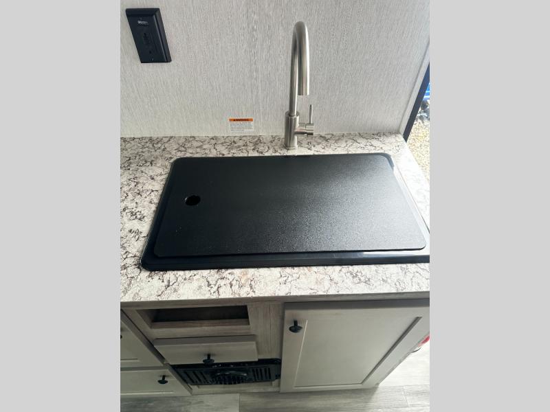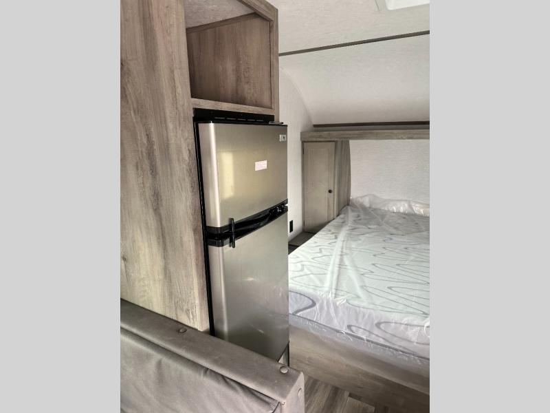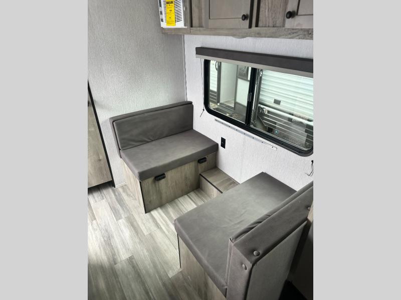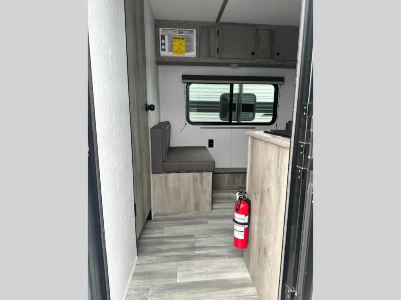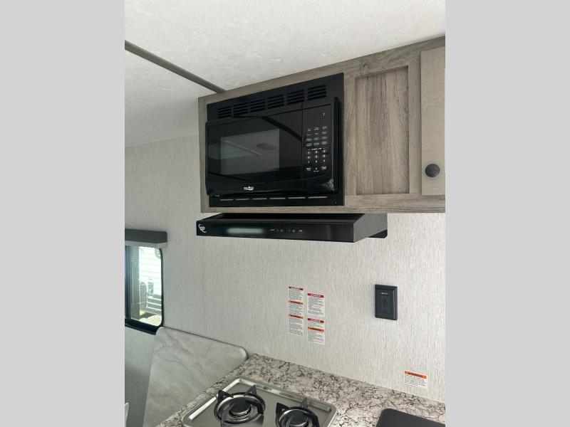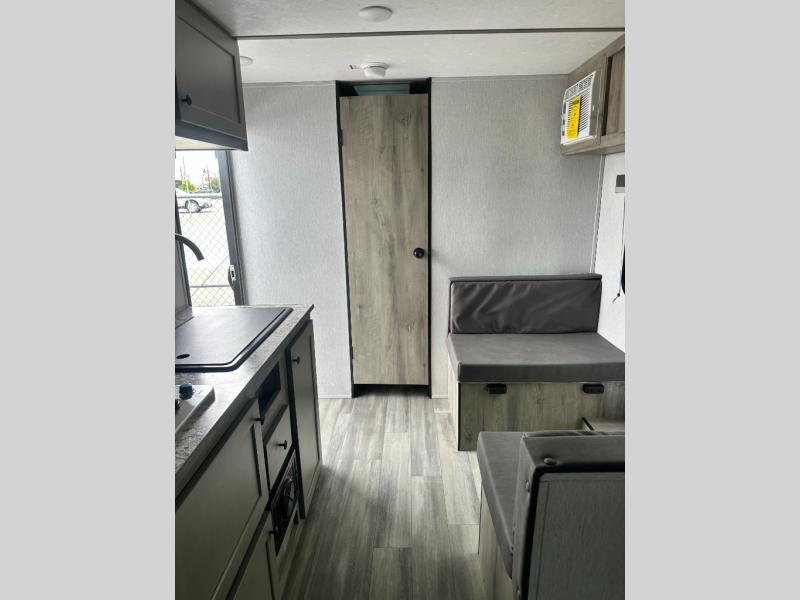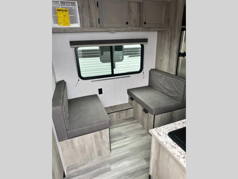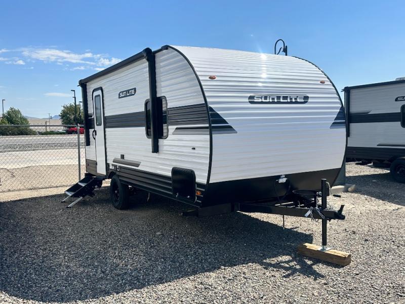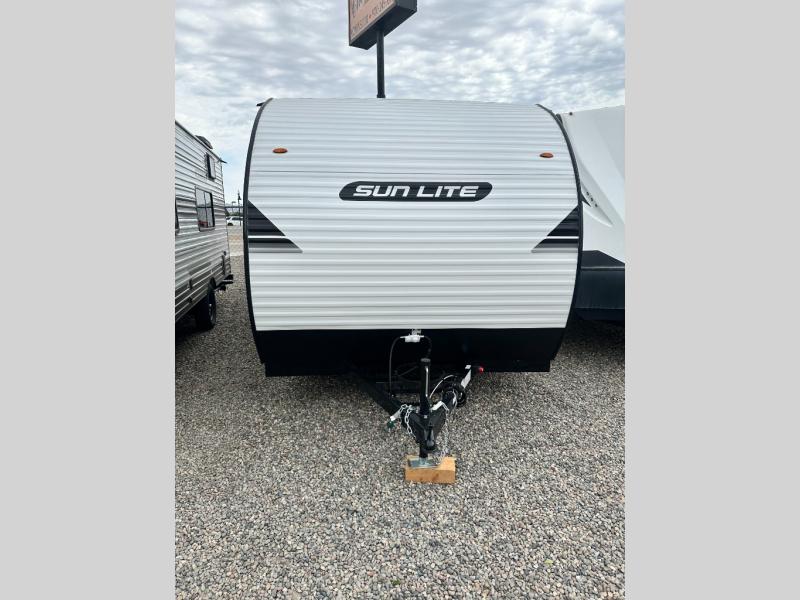 The perfect couple's trailer is waiting for you with this Sun Lite LTD! The front RV queen bed will provide a great night's rest after a day of hiking outdoors, and the full rear bath will let you clean up each day. There is a booth dinette where you can dine at each day, and even let another guest sleep over if needed. You'll also find a two burner stove to make meals, a double sink to clean up, and a 4.3 cu. ft. 12V refrigerator for leftovers! What's not to love about this travel trailer?!