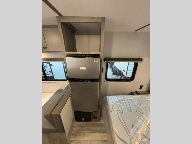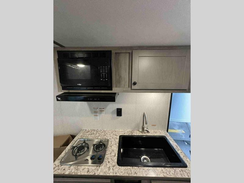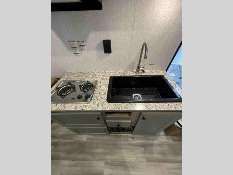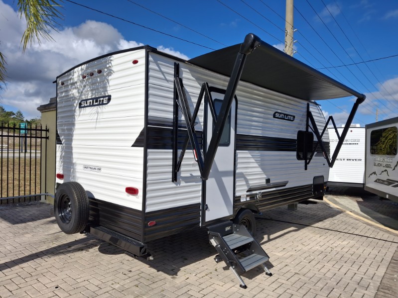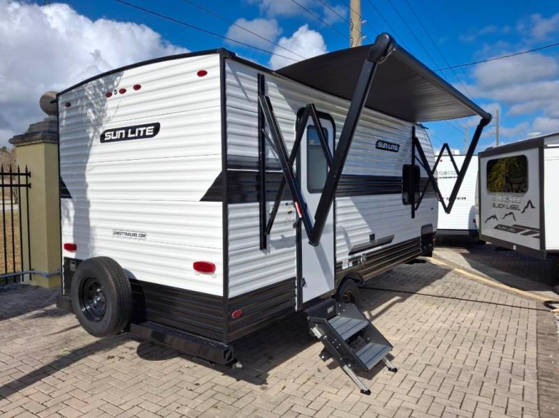 Each Sun Lite LTD travel trailer by Sunset Park RV is made with flexibility in mind. These lightweight models weigh under 3,000 lbs. for easy towing, and they offer best-in class interior storage for all your belongings. They are built with a one-piece PVC roof membrane and a durable rock guard that will help protect against rock and debris on the way to the campground. There is also an electric awning outside, along with a 100-watt solar kit, an outside shower, and more convenient features. You'll find a power roof vent in the bath, stylish window treatments, ball bearing drawer guides, and LED lights to name a few interior comforts.