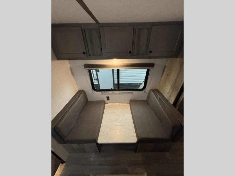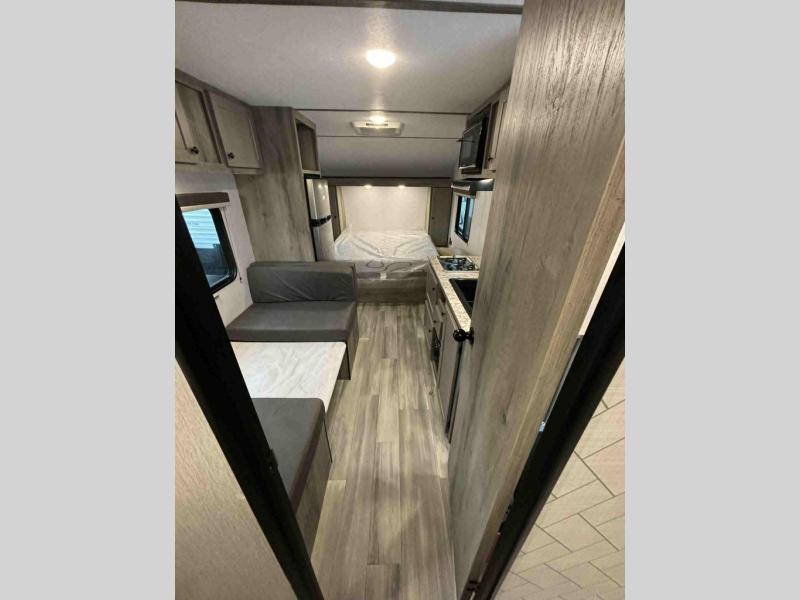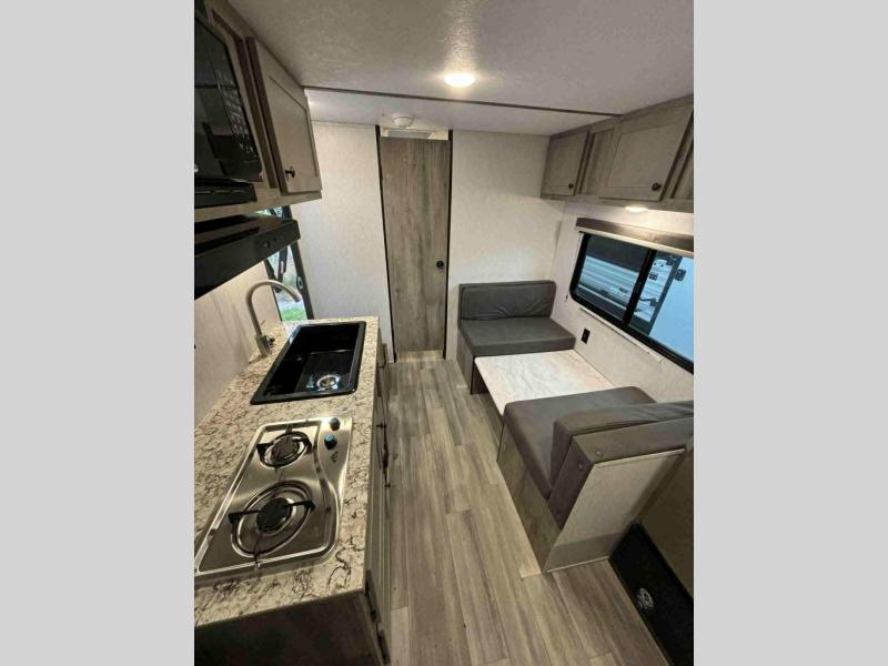 The perfect couple's trailer is waiting for you with this Sun Lite LTD! The front RV queen bed will provide a great night's rest after a day of hiking outdoors, and the full rear bath will let you clean up each day. There is a booth dinette where you can dine at each day, and even let another guest sleep over if needed. You'll also find a two burner stove to make meals, a double sink to clean up, and a 4.3 cu. ft. 12V refrigerator for leftovers! What's not to love about this travel trailer?!