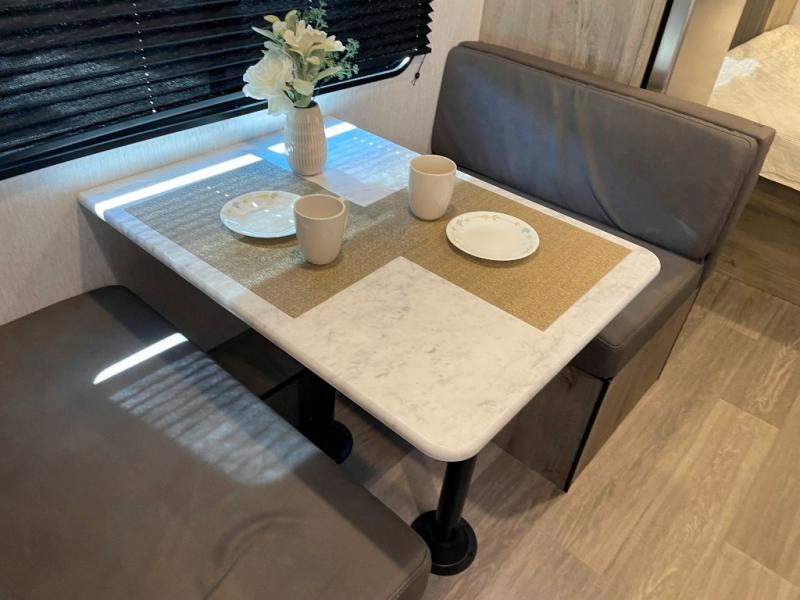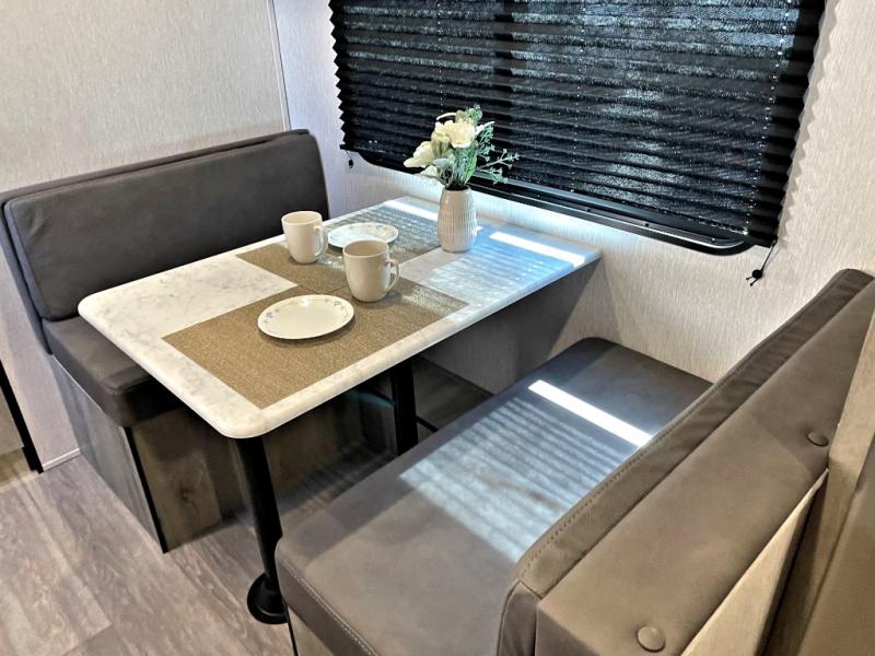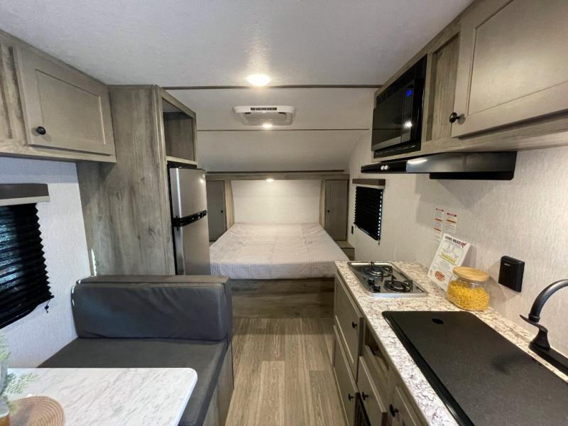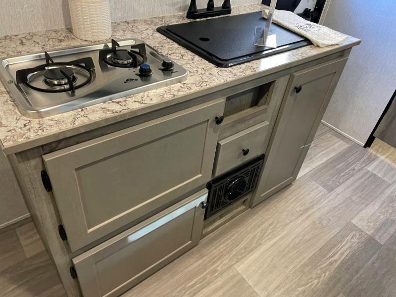 The perfect couple's trailer is waiting for you with this Sun Lite LTD! The front RV queen bed will provide a great night's rest after a day of hiking outdoors, and the full rear bath will let you clean up each day. There is a booth dinette where you can dine at each day, and even let another guest sleep over if needed. You'll also find a two burner stove to make meals, a double sink to clean up, and a 4.3 cu. ft. 12V refrigerator for leftovers! What's not to love about this travel trailer?!