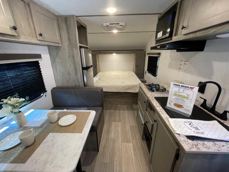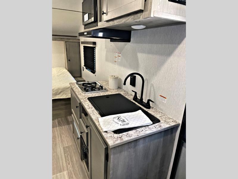 Each Sun Lite LTD travel trailer by Sunset Park RV is made with flexibility in mind. These lightweight models weigh under 3,000 lbs. for easy towing, and they offer best-in class interior storage for all your belongings. They are built with a one-piece PVC roof membrane and a durable rock guard that will help protect against rock and debris on the way to the campground. There is also an electric awning outside, along with a 100-watt solar kit, an outside shower, and more convenient features. You'll find a power roof vent in the bath, stylish window treatments, ball bearing drawer guides, and LED lights to name a few interior comforts.