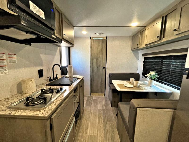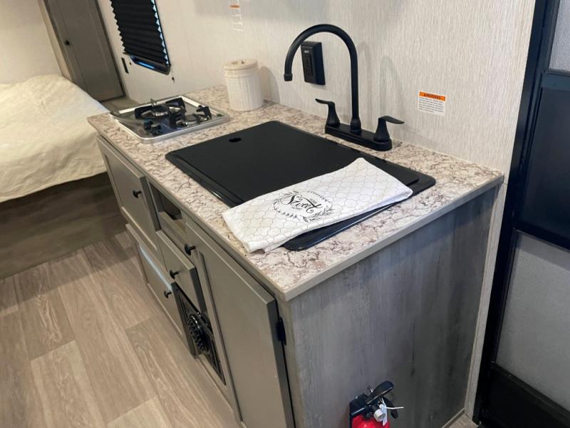Each Sun Lite LTD travel trailer by Sunset Park RV is made with flexibility in mind. These lightweight models weigh under 3,000 lbs. for easy towing, and they offer best-in class interior storage for all your belongings. They are built with a one-piece PVC roof membrane and a durable rock guard that will help protect against rock and debris on the way to the campground. There is also an electric awning outside, along with a 100-watt solar kit, an outside shower, and more convenient features. You'll find a power roof vent in the bath, stylish window treatments, ball bearing drawer guides, and LED lights to name a few interior comforts.