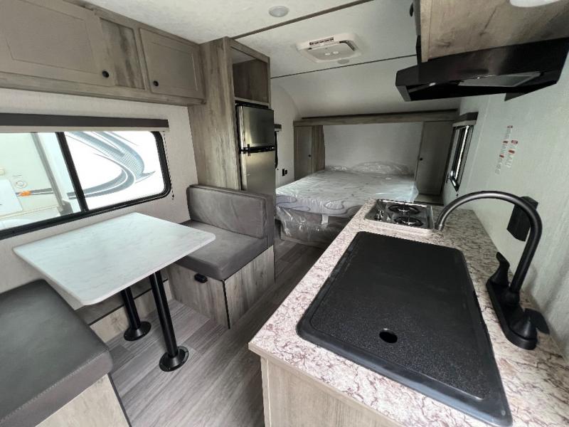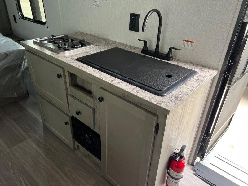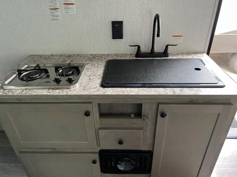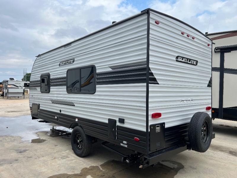 Each Sun Lite LTD travel trailer by Sunset Park RV is made with flexibility in mind. These lightweight models weigh under 3,000 lbs. for easy towing, and they offer best-in class interior storage for all your belongings. They are built with a one-piece PVC roof membrane and a durable rock guard that will help protect against rock and debris on the way to the campground. There is also an electric awning outside, along with a 100-watt solar kit, an outside shower, and more convenient features. You'll find a power roof vent in the bath, stylish window treatments, ball bearing drawer guides, and LED lights to name a few interior comforts.
