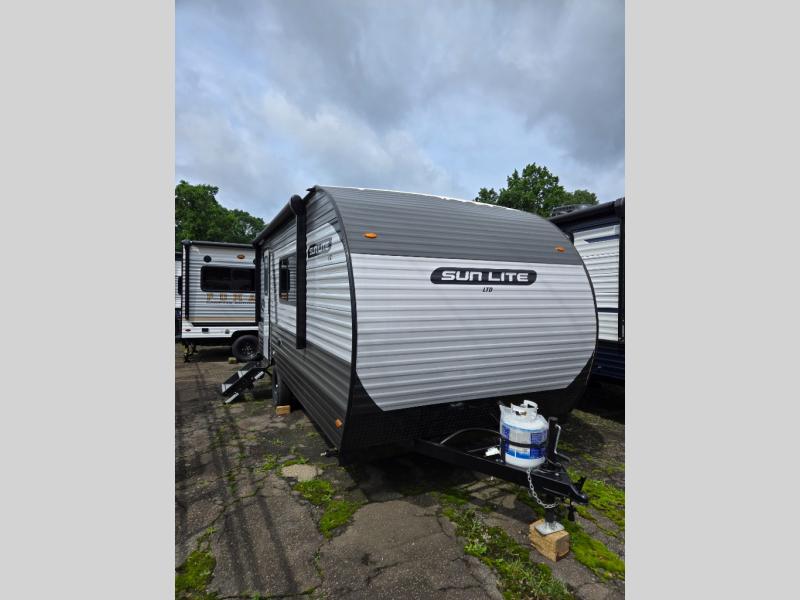 Each Sun Lite LTD travel trailer by Sunset Park RV is made with flexibility in mind. These lightweight models weigh under 3,000 lbs. for easy towing, and they offer best-in class interior storage for all your belongings. There are wood framed sidewalls, .024" aluminum siding, plus 3/8" fully walkable roof decking for added durability. The spring-leaf Dexter axles and radial tires will make towing easier than ever, and the front and rear stabilizer jacks will provide a secure foundation when you're set up at the campground. A 100W solar kit with a controller is also included, along with a 20 lb. LP tank, and a power awning for protection against the elements. Inside, you'll find a power vent in the bathroom, LED lights, USB ports, and cable/satellite hookups. And the LTD Appliance Package also comes standard with a 12V refrigerator, a two burner stove, a DSI gas water heater, plus a 5k BTU A/C and a 16k BTU furnace!