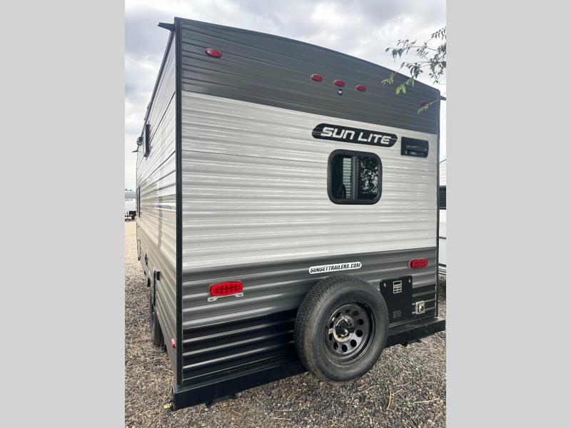 Each Sun Lite LTD travel trailer by Sunset Park RV is made with flexibility in mind. These lightweight models weigh under 3,000 lbs. for easy towing, and they offer best-in class interior storage for all your belongings. There are wood framed sidewalls, .024" aluminum siding, plus 3/8" fully walkable roof decking for added durability. The spring-leaf Dexter axles and radial tires will make towing easier than ever, and the front and rear stabilizer jacks will provide a secure foundation when you're set up at the campground. A 100W solar kit with a controller is also included, along with a 20 lb. LP tank, and a power awning for protection against the elements. Inside, you'll find a power vent in the bathroom, LED lights, USB ports, and cable/satellite hookups. And the LTD Appliance Package also comes standard with a 12V refrigerator, a two burner stove, a DSI gas water heater, plus a 5k BTU A/C and a 16k BTU furnace!