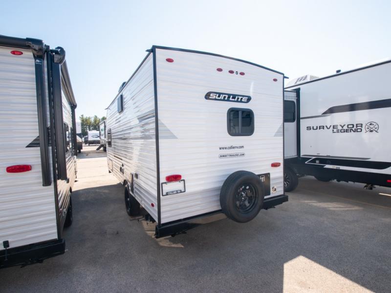 Each Sun Lite LTD travel trailer by Sunset Park RV is made with flexibility in mind. These lightweight models weigh under 3,000 lbs. for easy towing, and they offer best-in class interior storage for all your belongings. They are built with a one-piece PVC roof membrane and a durable rock guard that will help protect against rock and debris on the way to the campground. There is also an electric awning outside, along with a 100-watt solar kit, an outside shower, and more convenient features. You'll find a power roof vent in the bath, stylish window treatments, ball bearing drawer guides, and LED lights to name a few interior comforts.