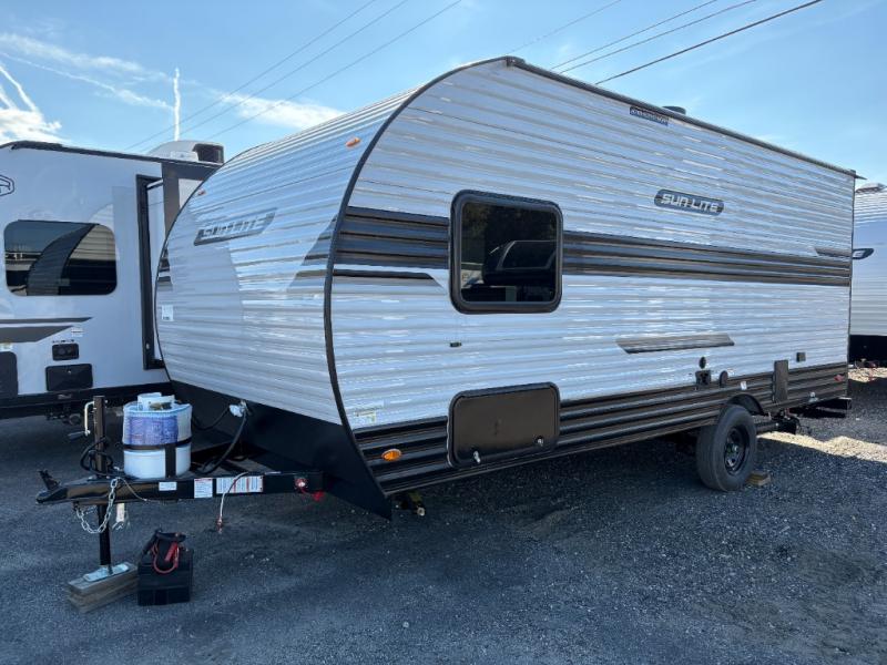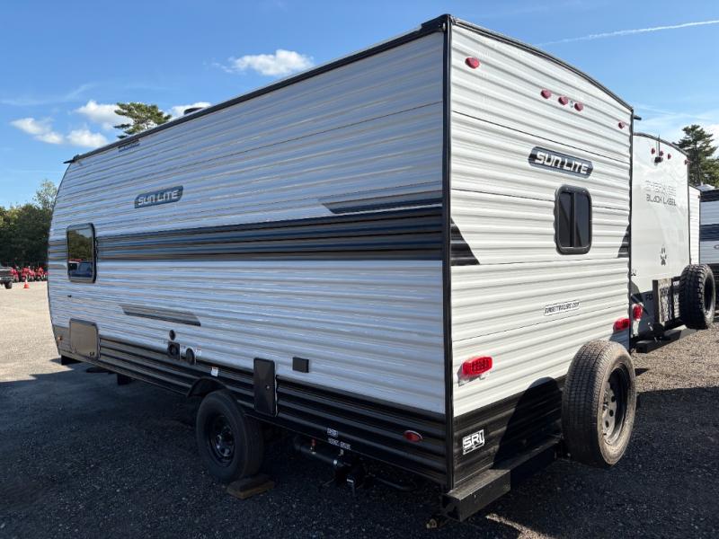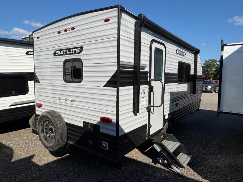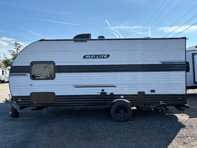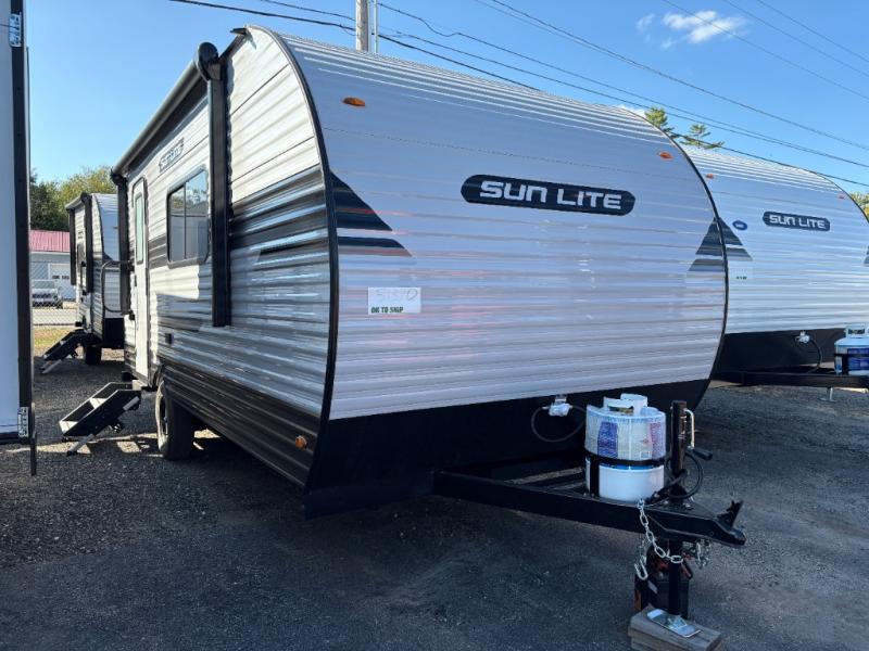 Each Sun Lite LTD travel trailer by Sunset Park RV is made with flexibility in mind. These lightweight models weigh under 3,000 lbs. for easy towing, and they offer best-in class interior storage for all your belongings. They are built with a one-piece PVC roof membrane and a durable rock guard that will help protect against rock and debris on the way to the campground. There is also an electric awning outside, along with a 100-watt solar kit, an outside shower, and more convenient features. You'll find a power roof vent in the bath, stylish window treatments, ball bearing drawer guides, and LED lights to name a few interior comforts.
